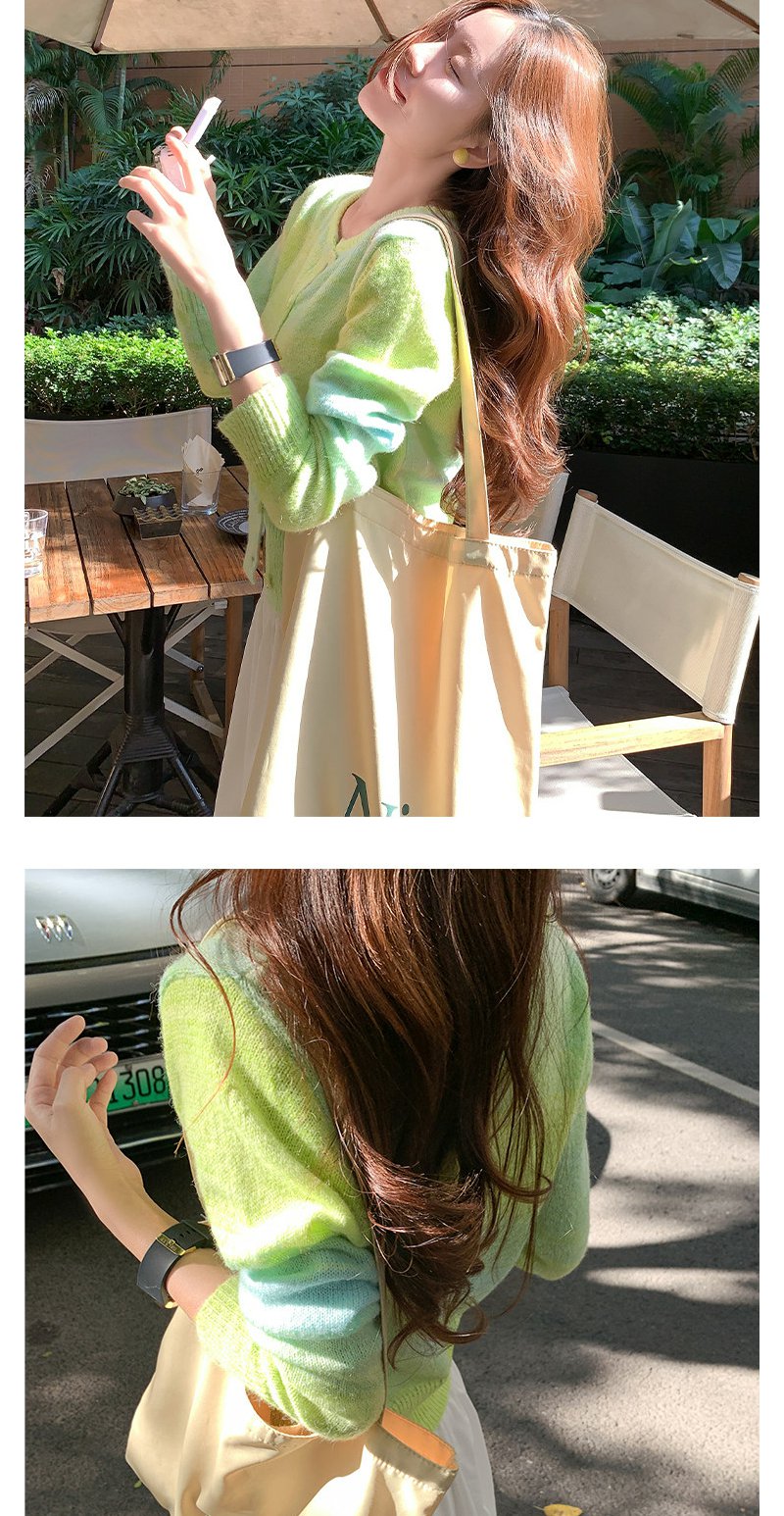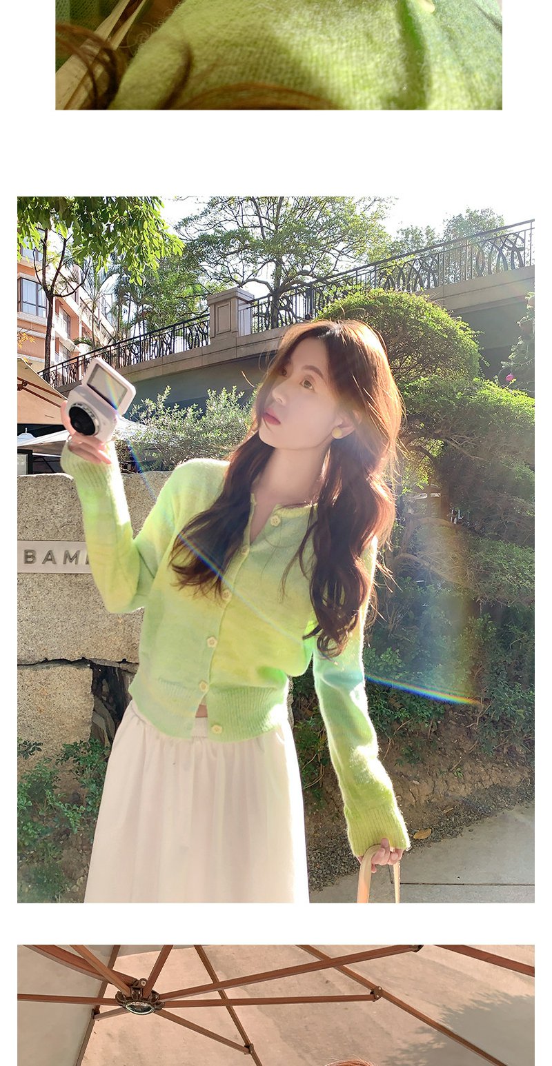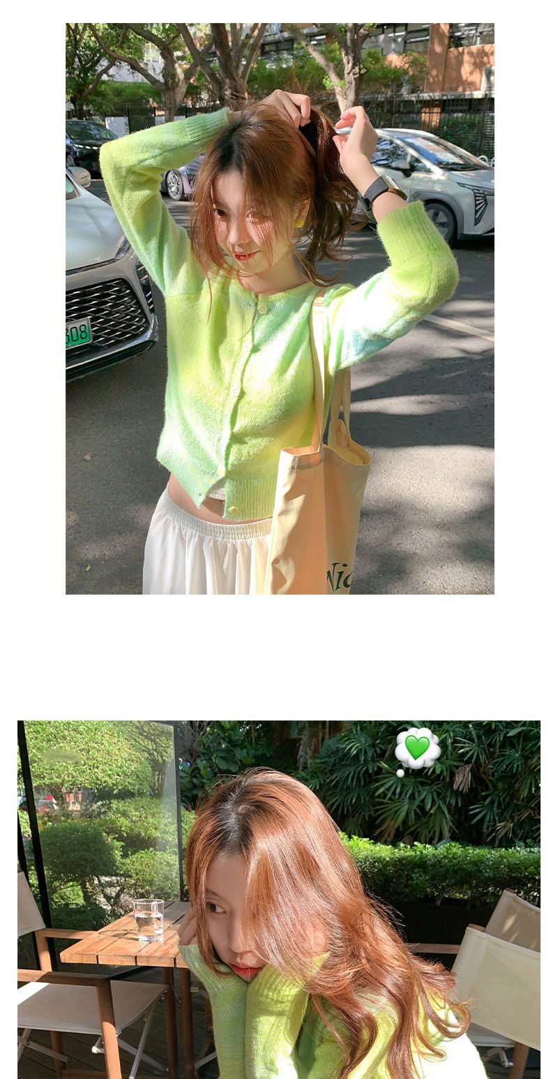 <曾小咸推荐>韩系渐变绿色针织毛衣开衫