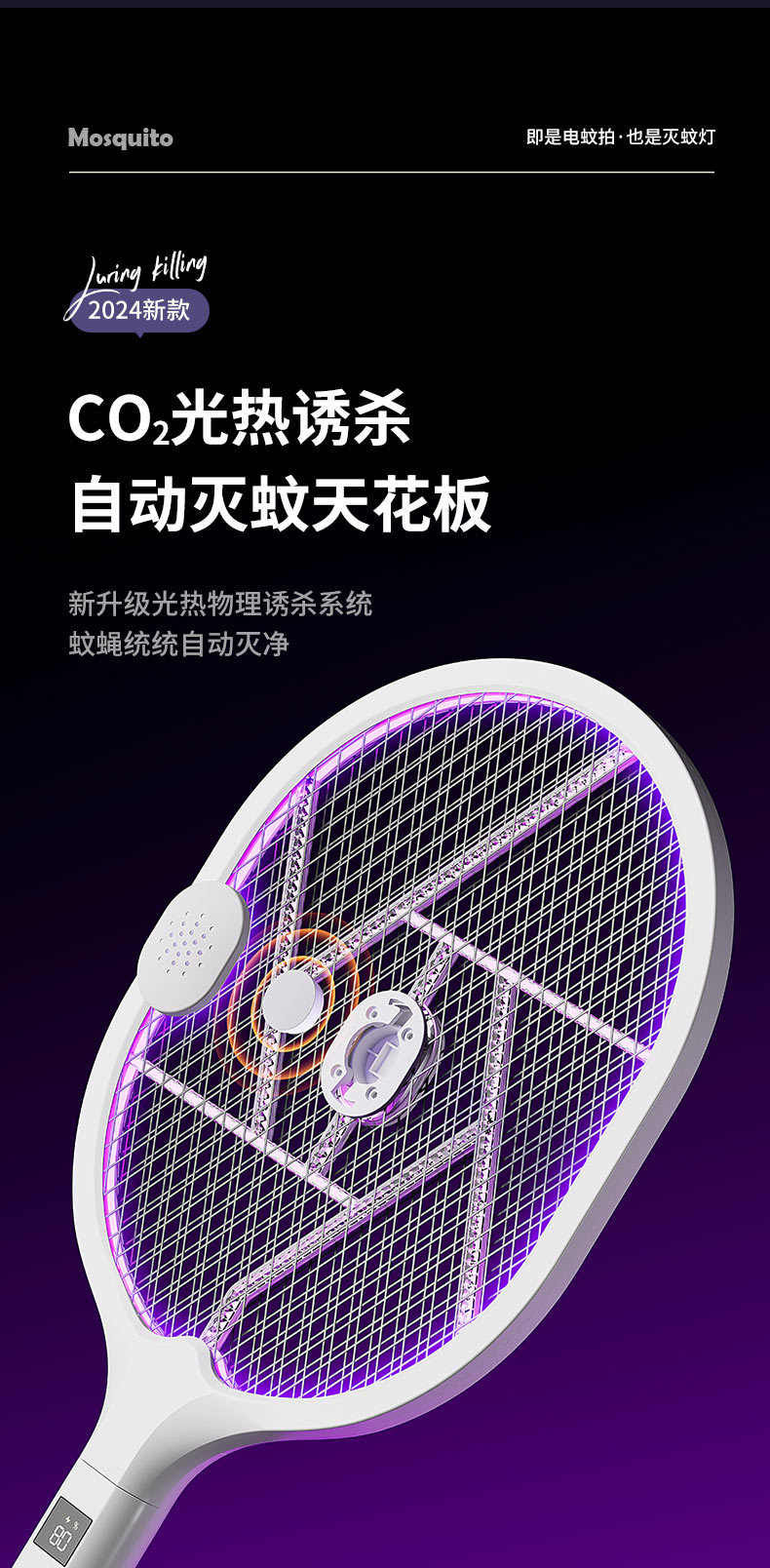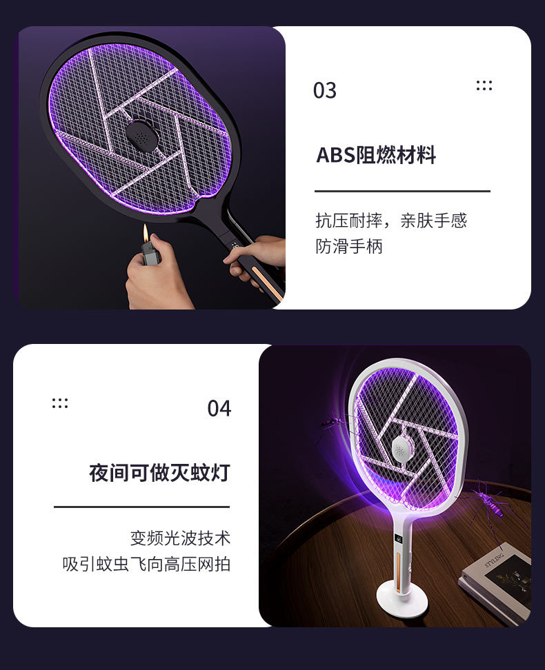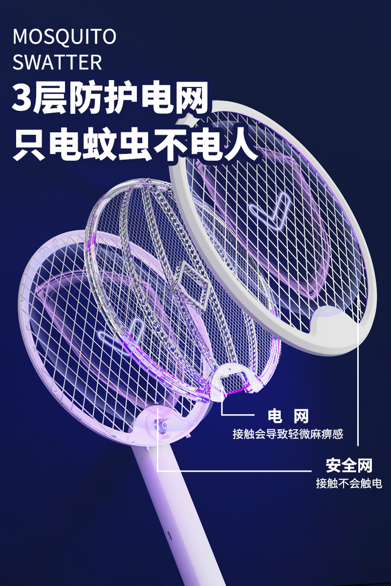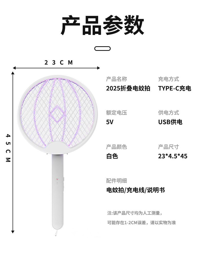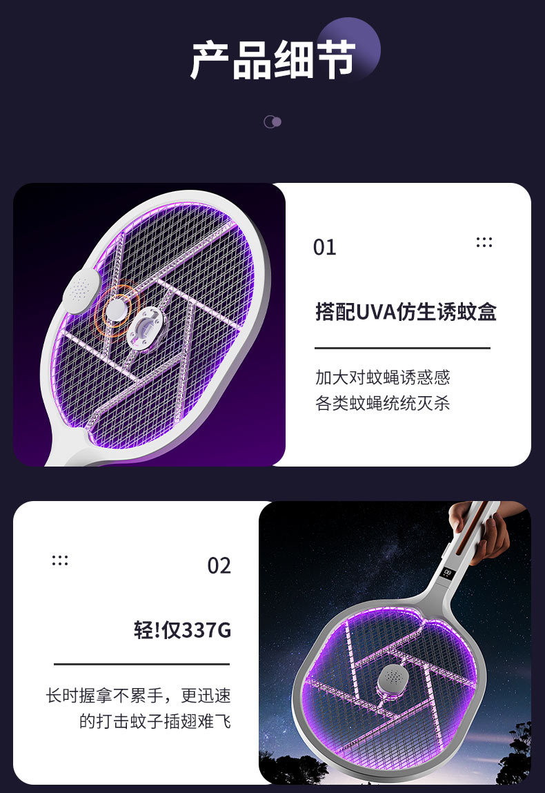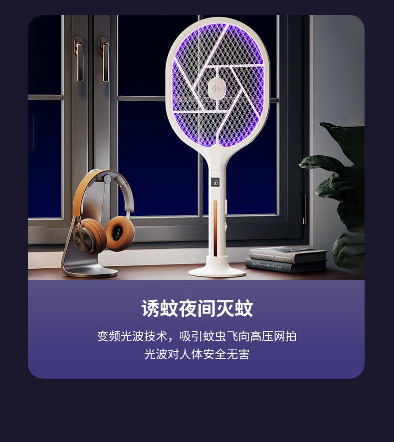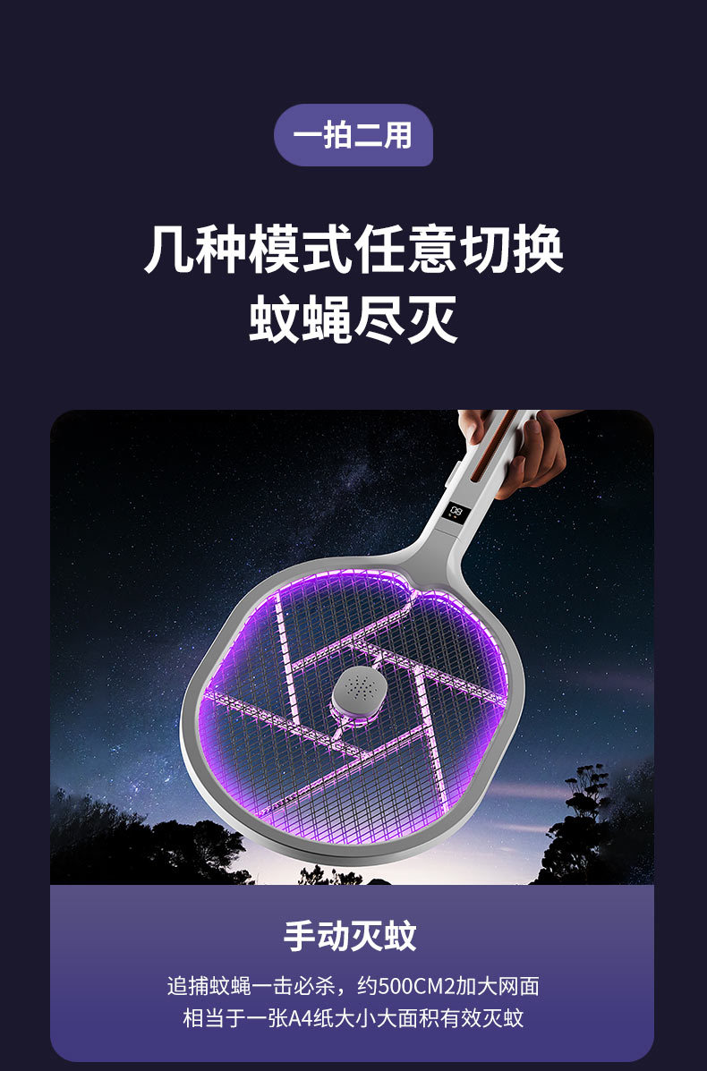 电蚊拍 折叠灭蚊器 二合一家用充电手持自动诱蚊驱蚊灯 移动灭蚊灯