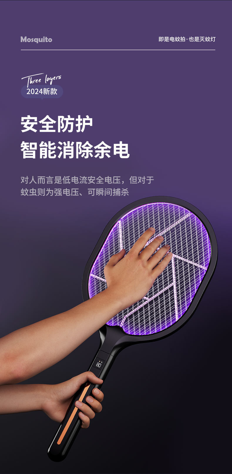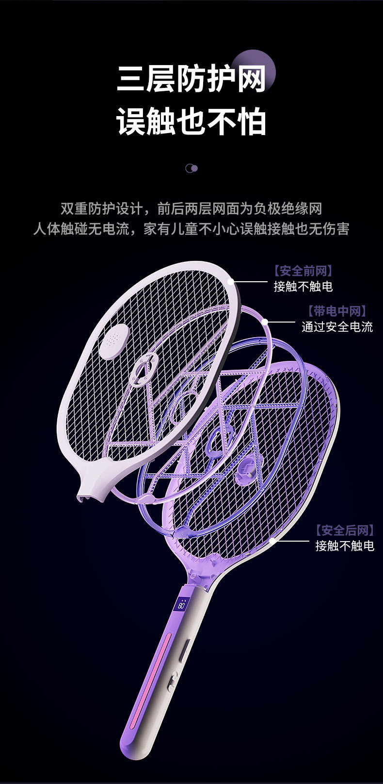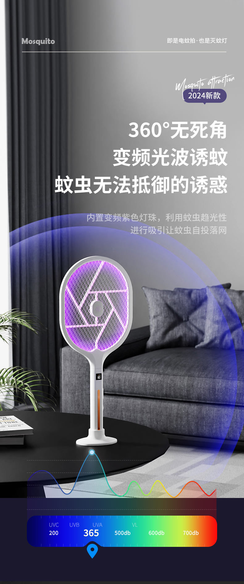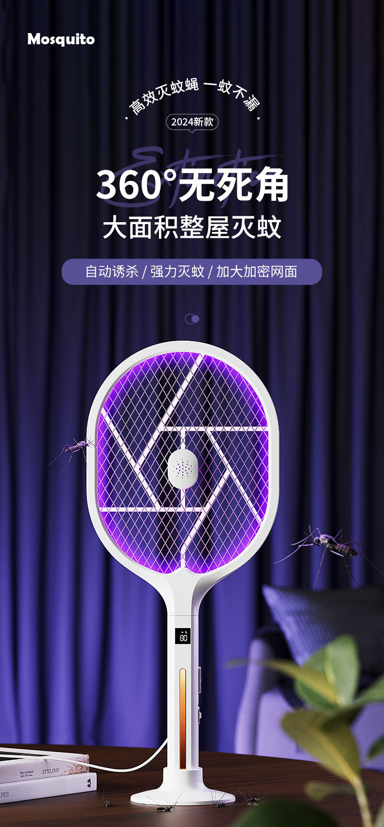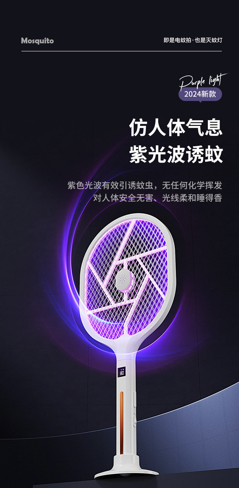 电蚊拍 折叠灭蚊器 二合一家用充电手持自动诱蚊驱蚊灯 移动灭蚊灯