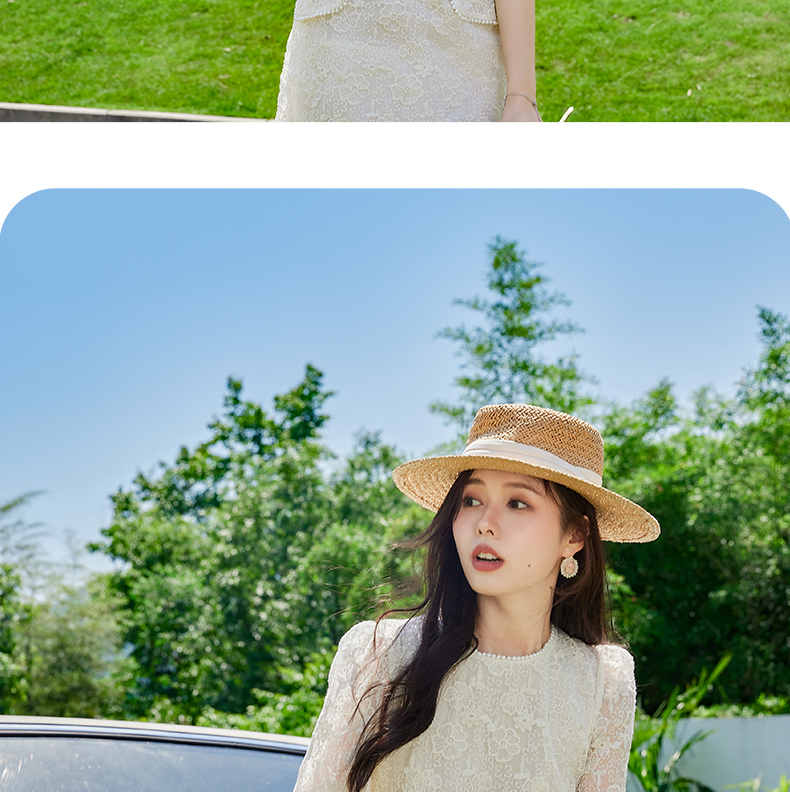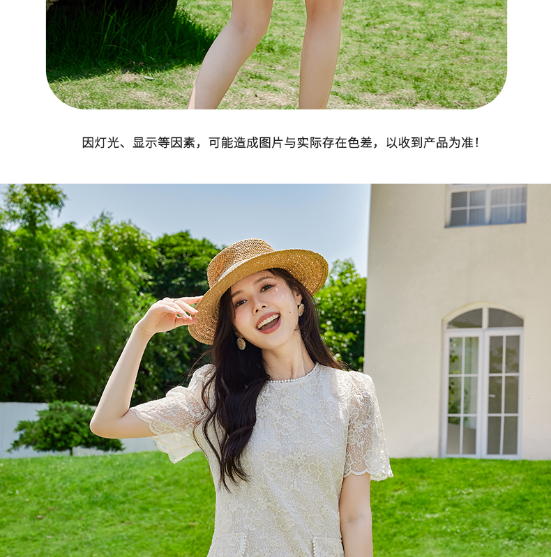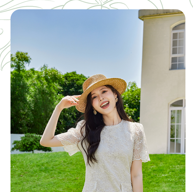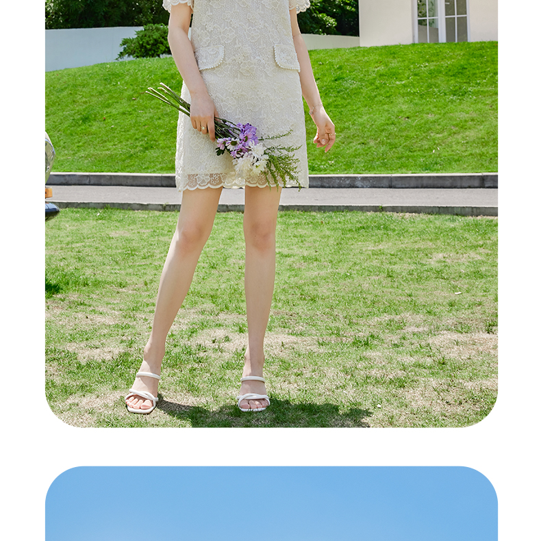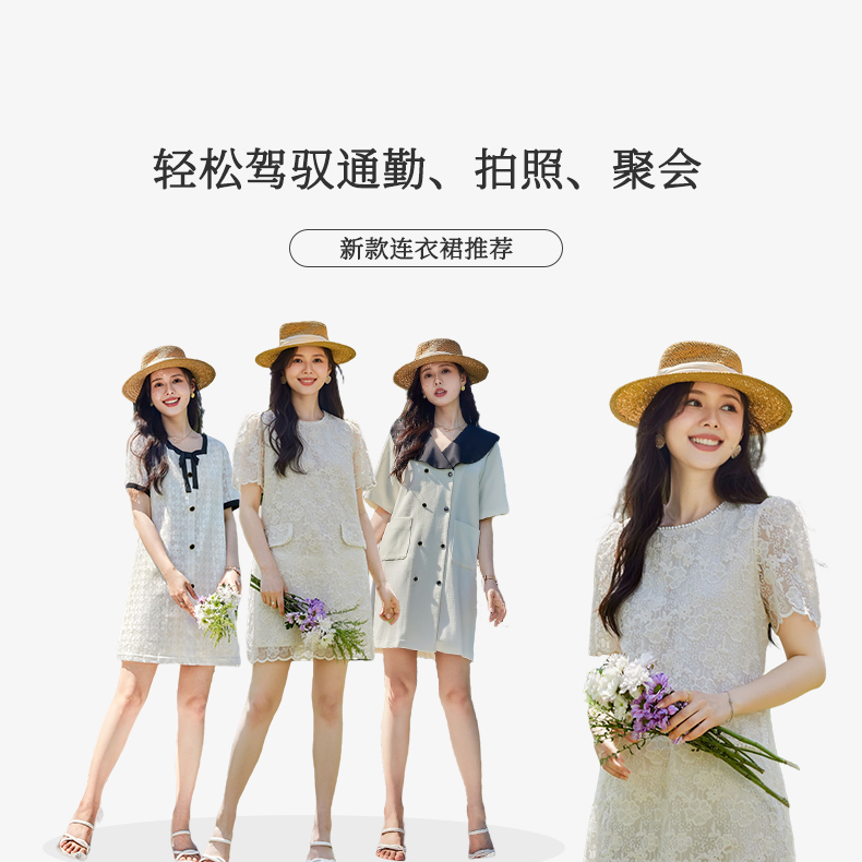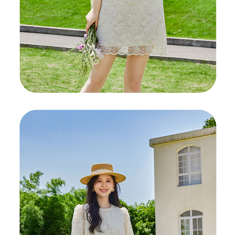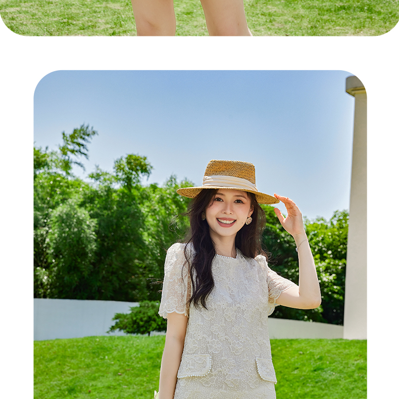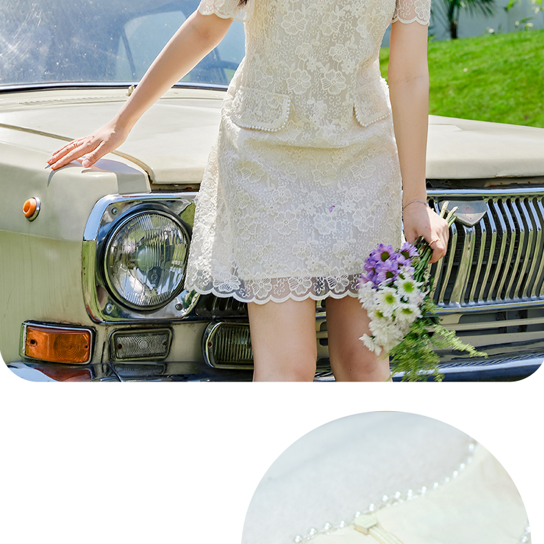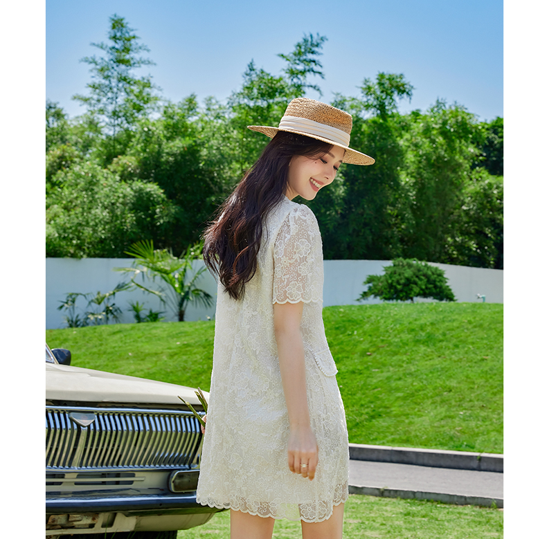 VICTORIA&VERA夏季新款小香风假口袋蕾丝短款连衣裙