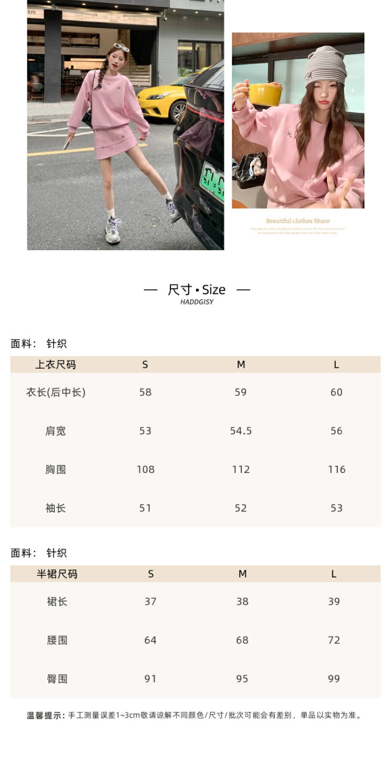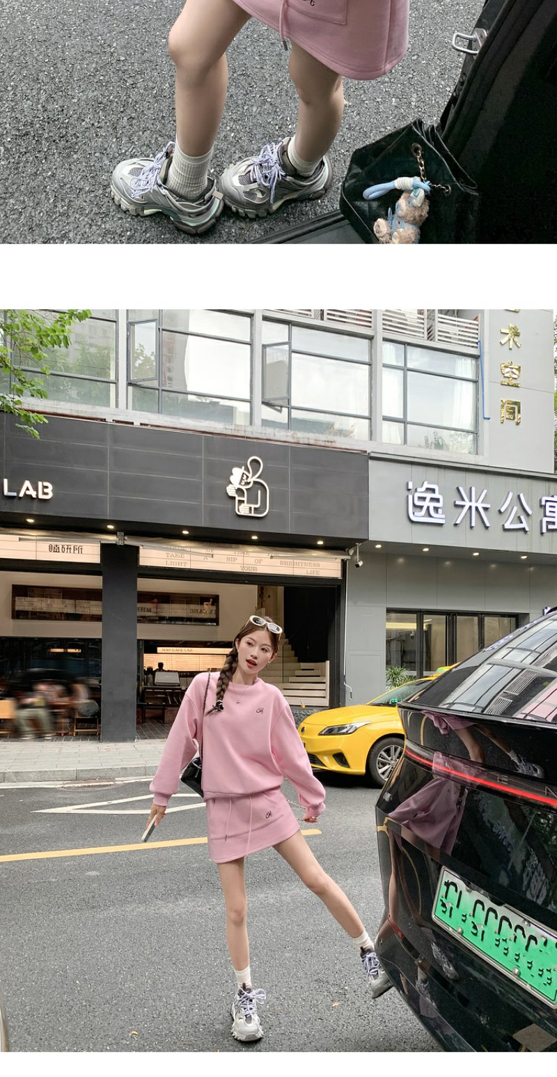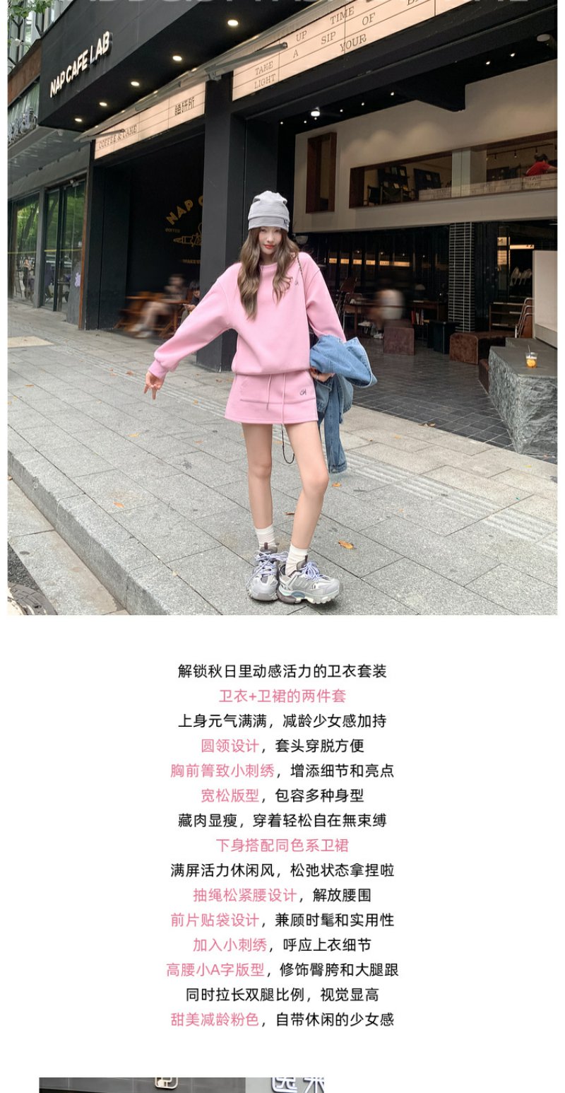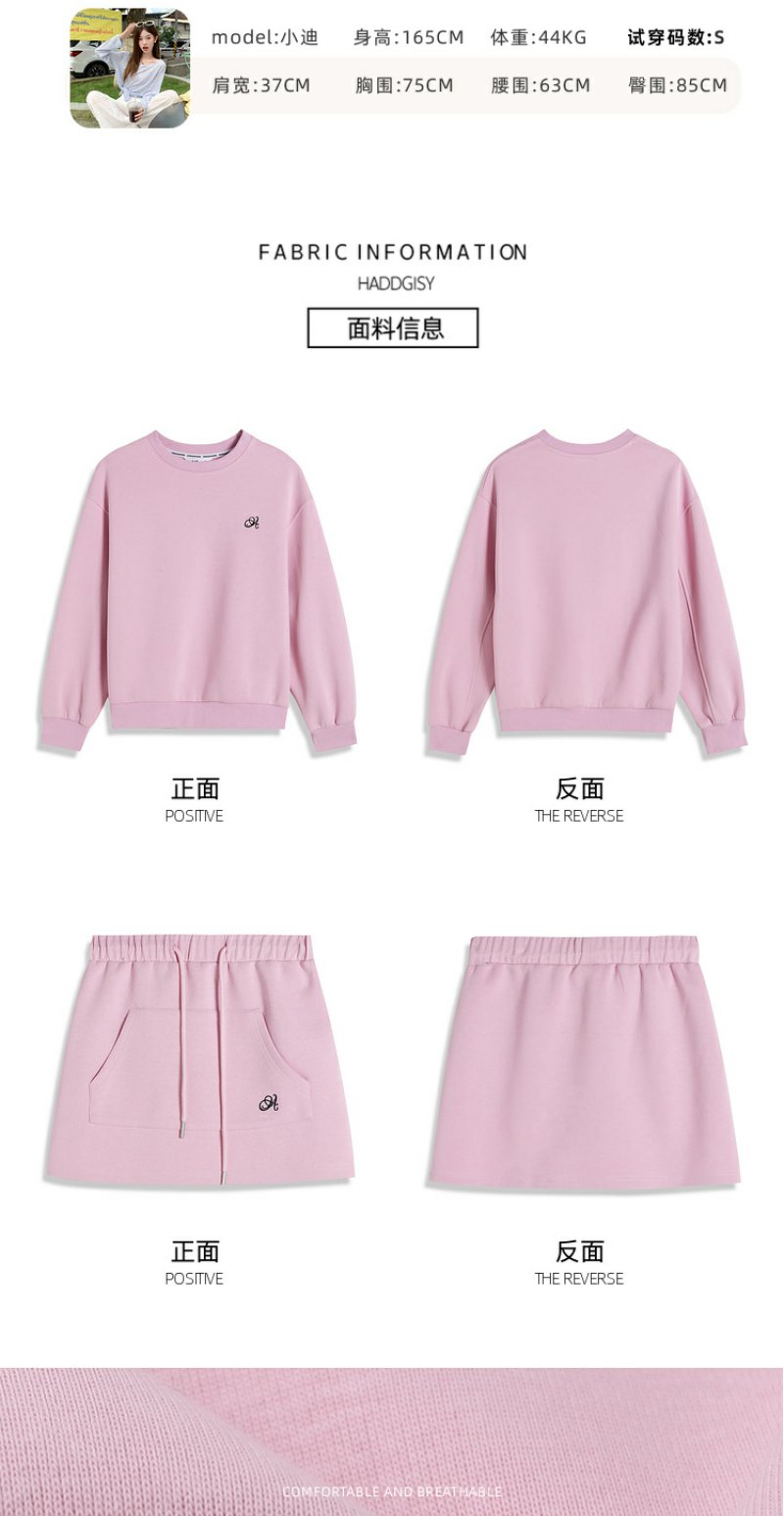 <曾小咸推荐> 粉色宽松休闲圆领卫衣粉色短裙两件套