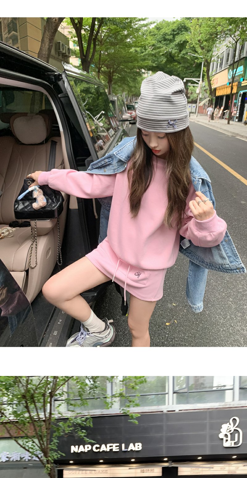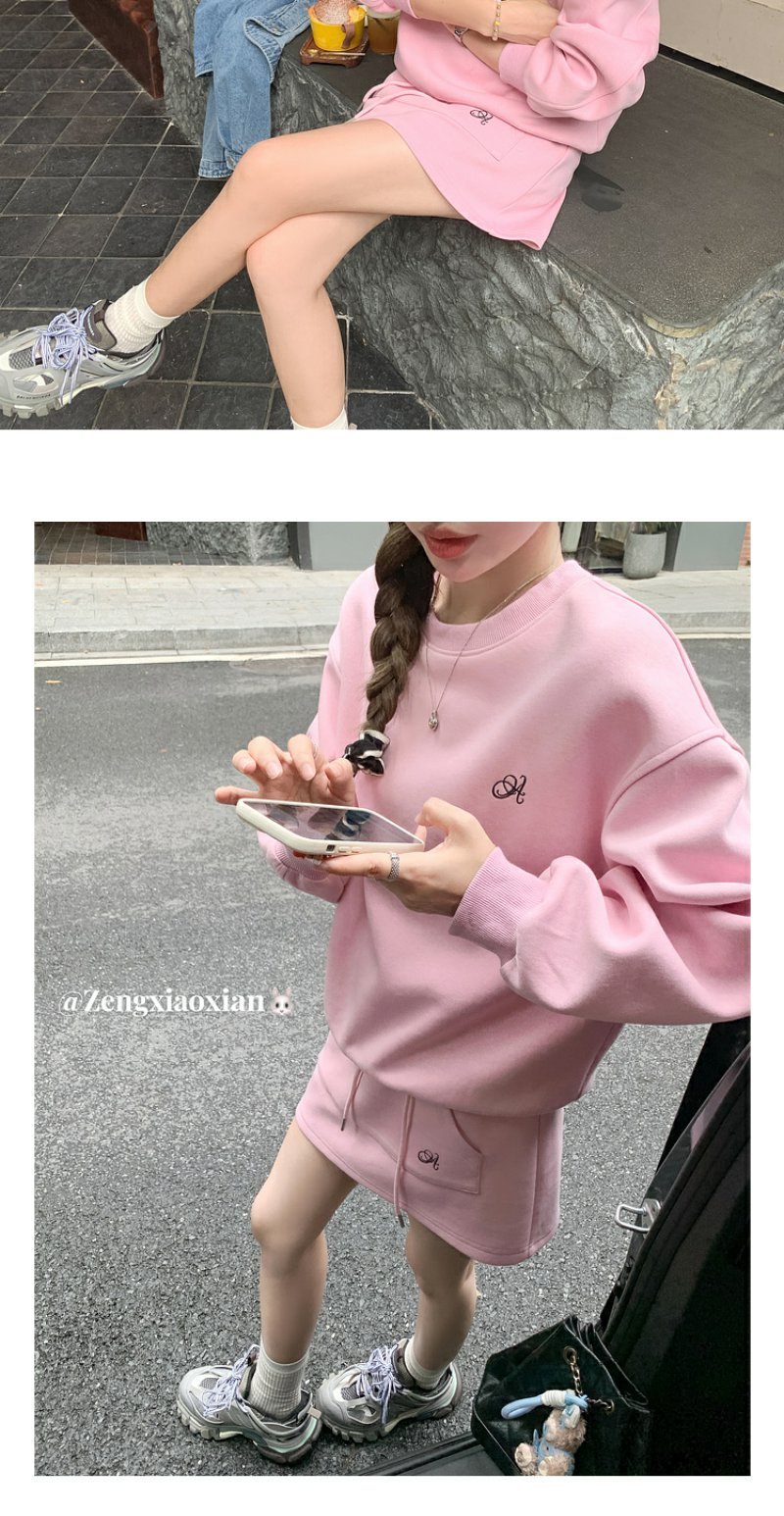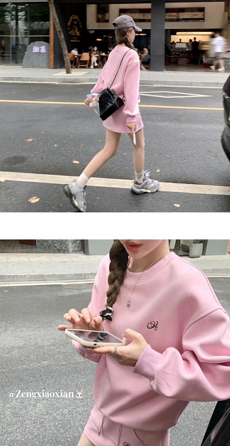 <曾小咸推荐> 粉色宽松休闲圆领卫衣粉色短裙两件套