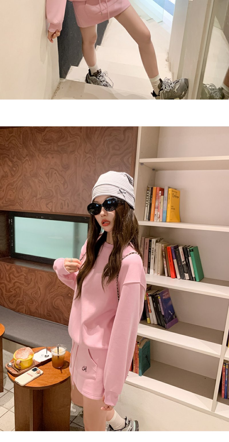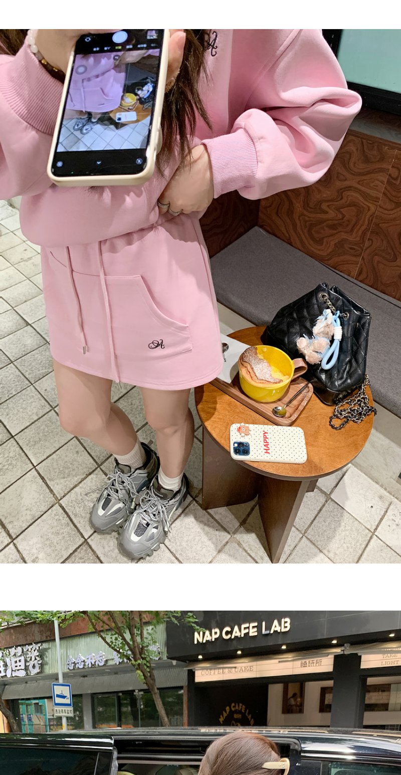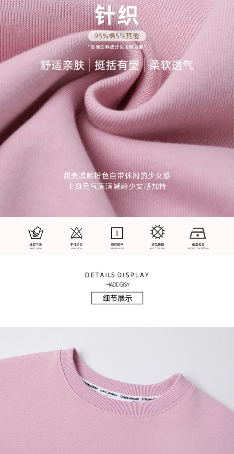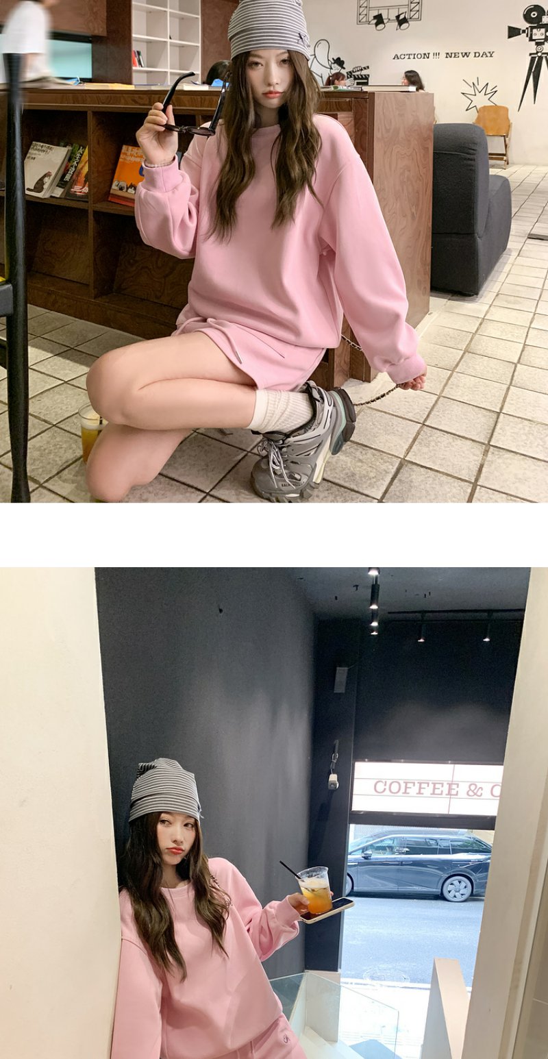 <曾小咸推荐> 粉色宽松休闲圆领卫衣粉色短裙两件套