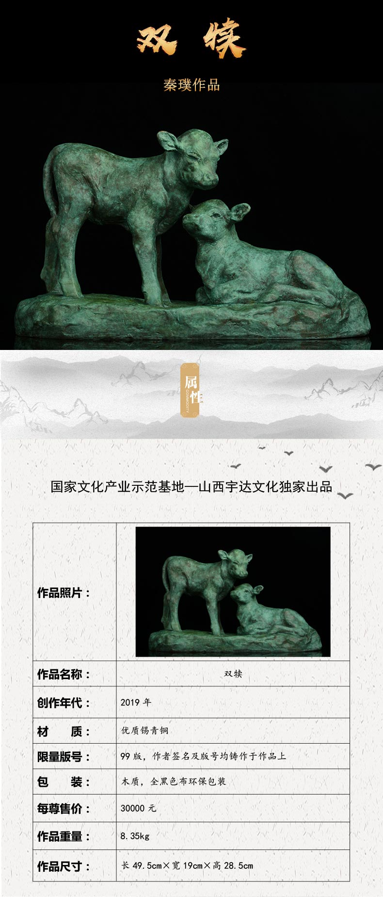 宇达青铜全铜摆件 秦璞作品《双犊情》限量99版 家居艺术装饰摆件 长49.5cm
