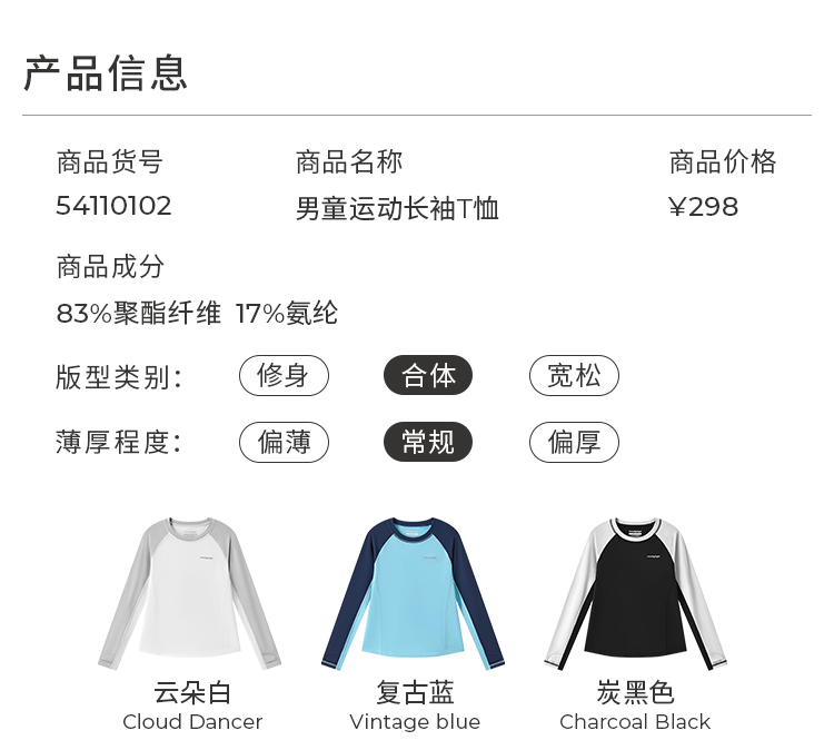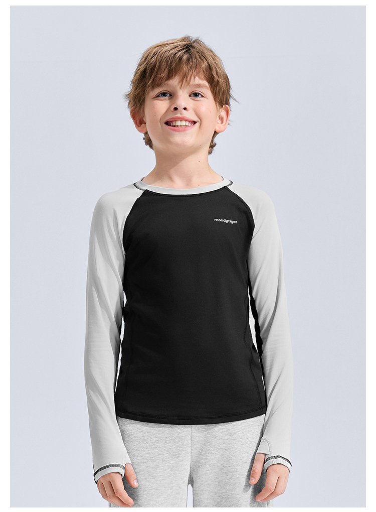 moodytiger儿童运动长袖运动风休闲舒适T恤打底上衣54110102【DR】