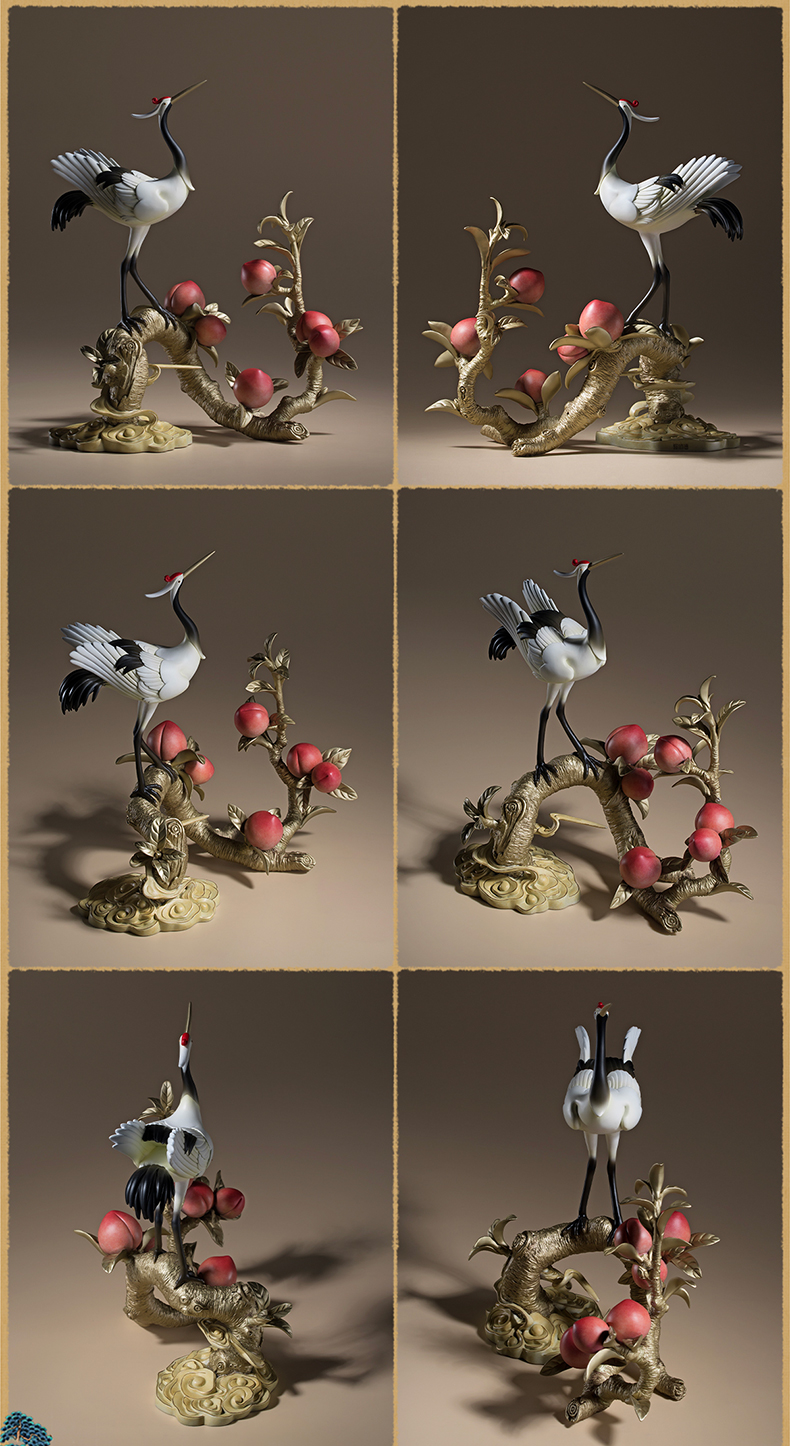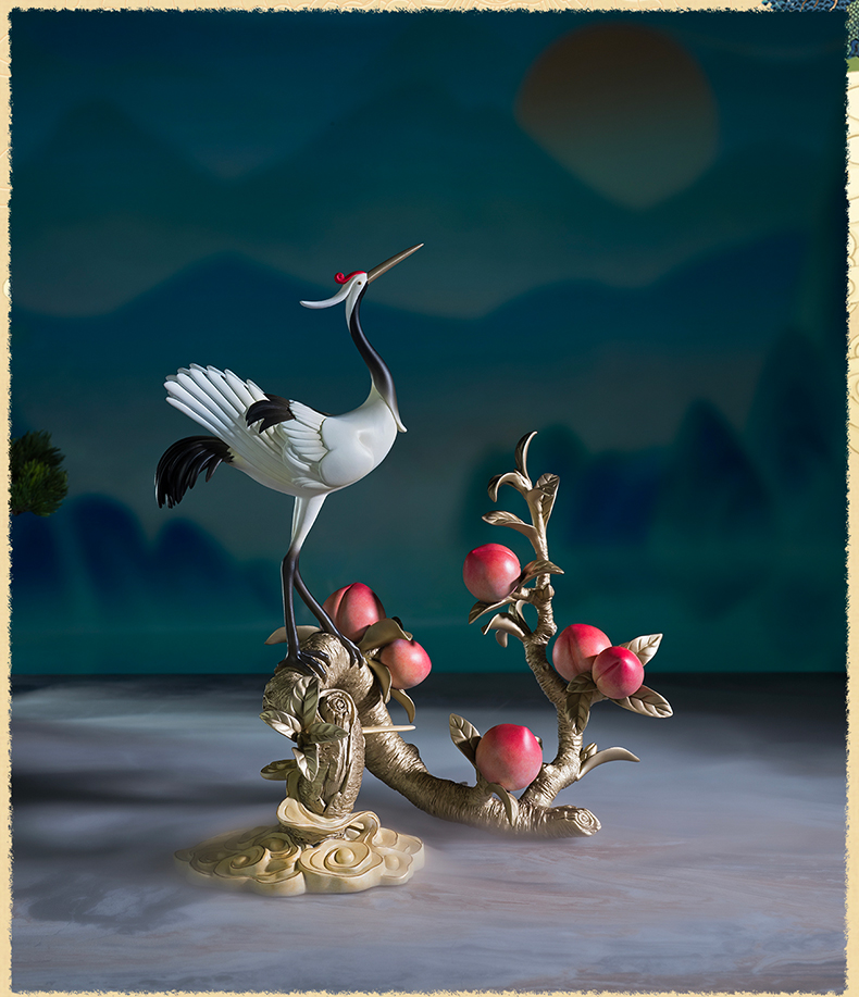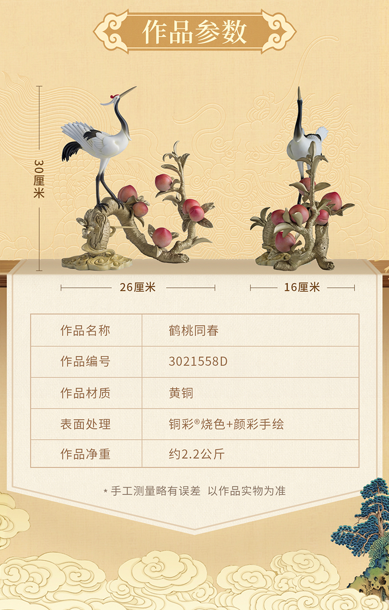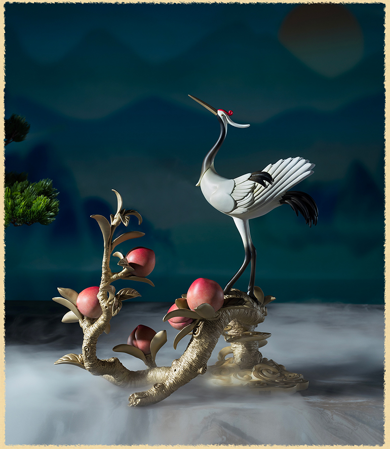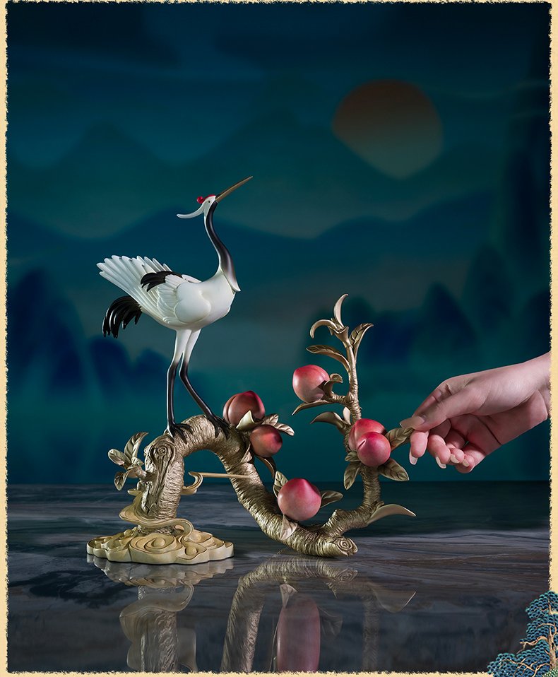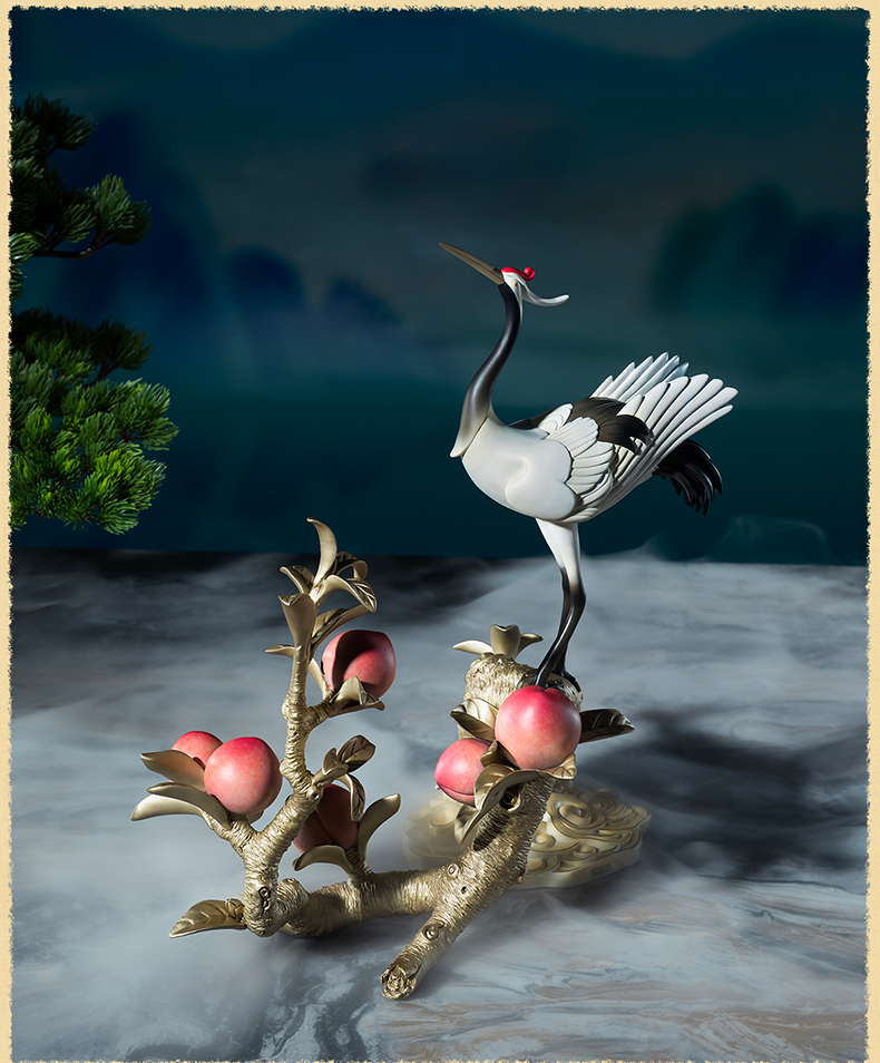 铜师傅《鹤桃同春》客厅装饰品铜摆件 送长辈领导祝寿生日礼物