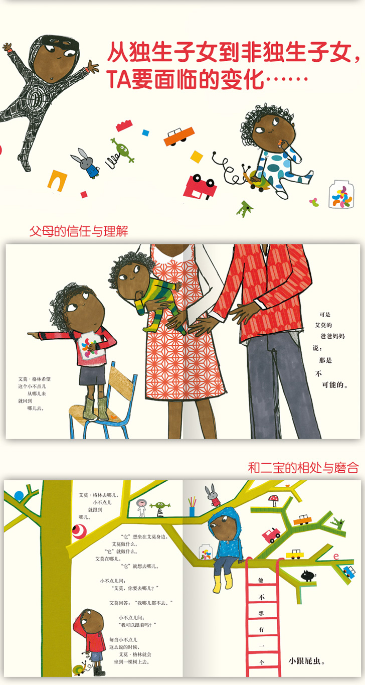 当我看到《艾莫有了个小弟弟》这本绘本时,我看到了一个从困惑、嫉妒过渡到接受、自豪的小男孩,小主人公艾莫的表现很好地代表了五六岁大的孩子。我觉得我们家大宝可能是因为年龄偏小,所以还没有发展出其中普遍意义上的“嫉妒心”。那么,我从孕育二宝开始,做了些什么呢?我觉得此时此刻也是一个值得好好反思的过程。——刘国平(《父母必读》养育科学研究院秘书长,中国ke xue yuan发展与教育心理学硕士,国家二级心理咨询师)