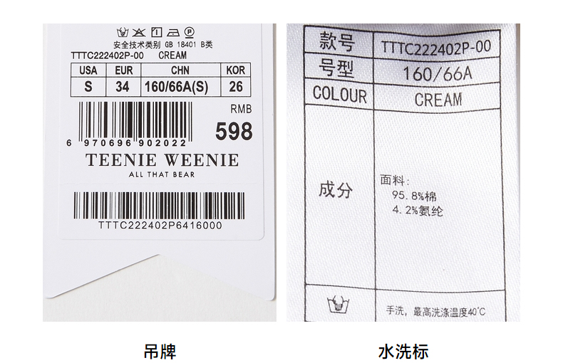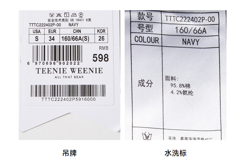 TeenieWeenie小熊2022新款女基础款工装风潮酷小个子直筒长裤子TTTC222402P
