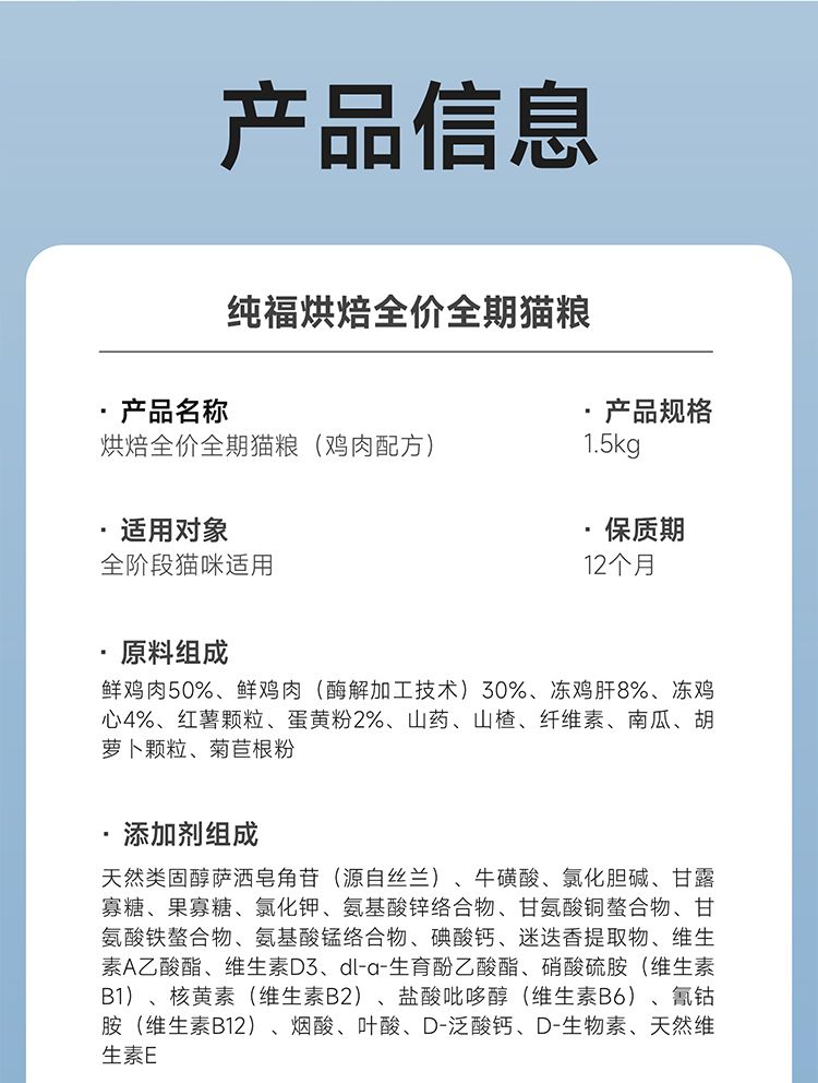 纯福猫粮 烘焙猫粮 鸡肉口味(48小时内发货,着急勿拍)