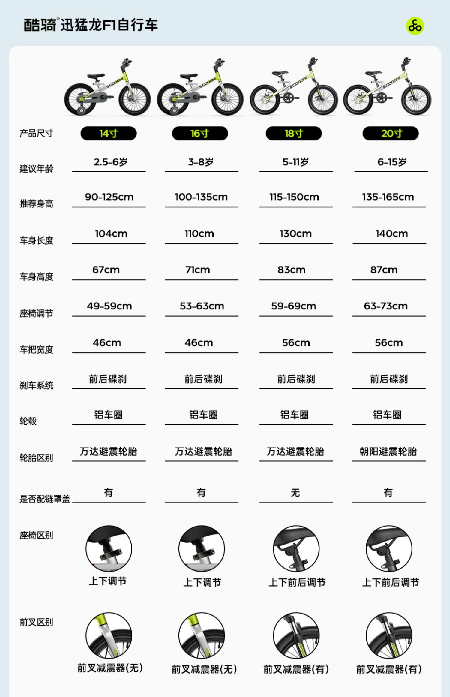 【COOGHI/酷骑】迅猛龙自行车 3一6一8一12岁