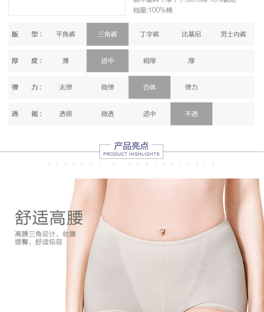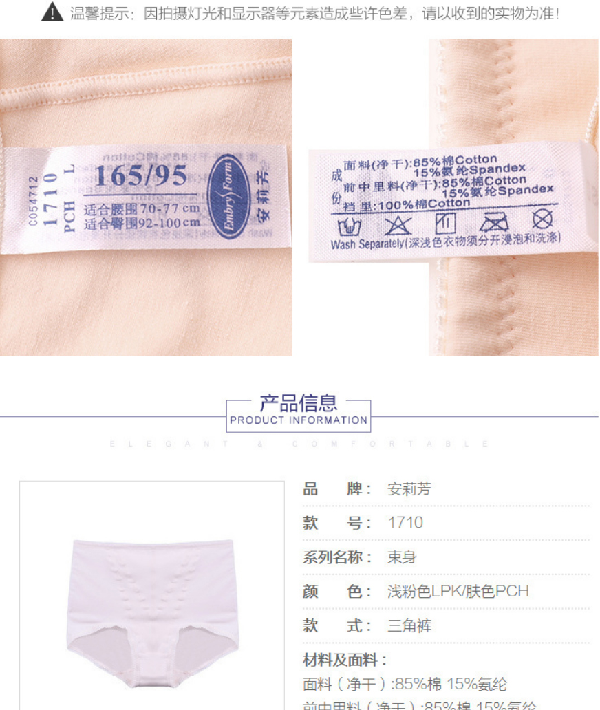 安莉芳女士棉质高腰束身裤甜美蕾丝收腹提臀三角裤1710