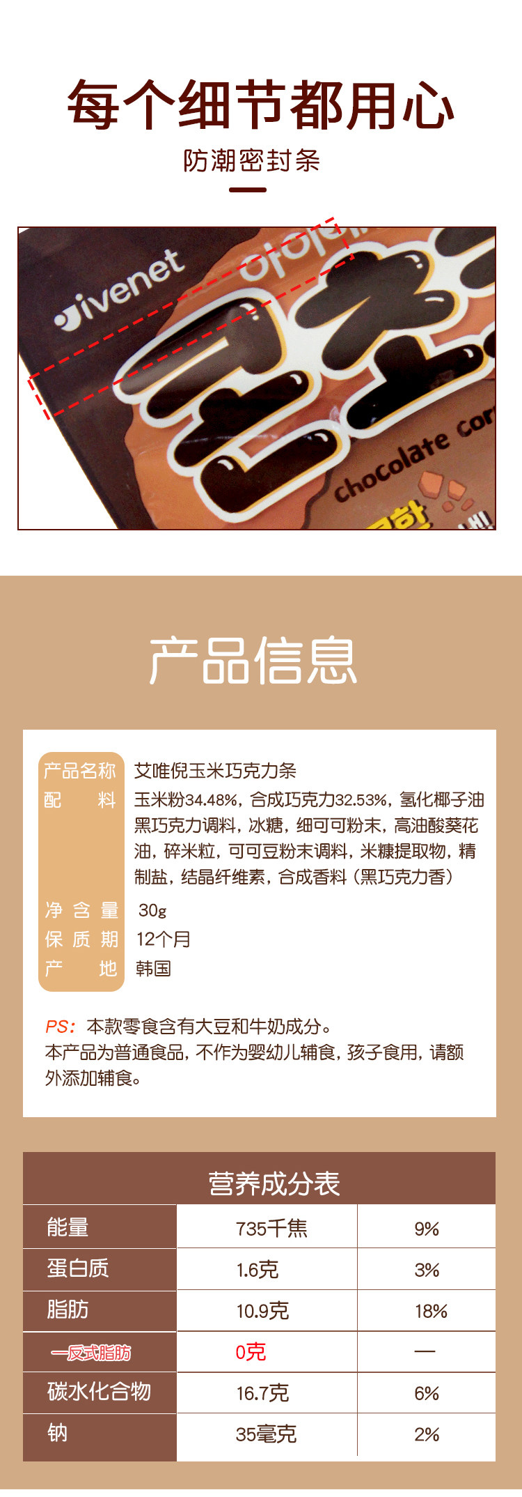 【新品上市】艾唯倪玉米巧克力条30g 韩国进口 儿童零食 脏脏条