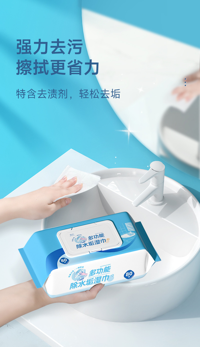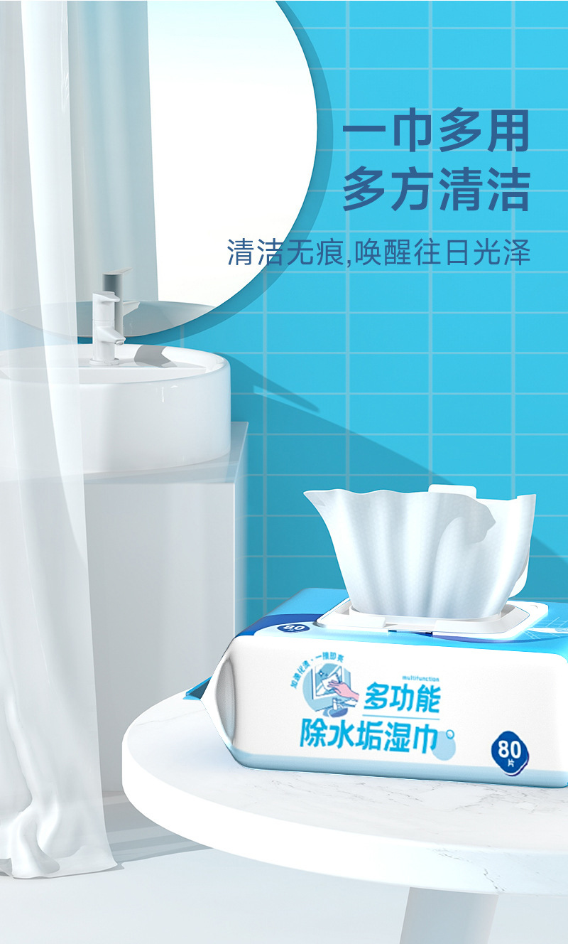 「拍1发2!9.9元包邮」除水垢卫生湿巾 多功能厨房用品浴室玻璃瓷砖水垢清洁除垢居家日用湿纸巾