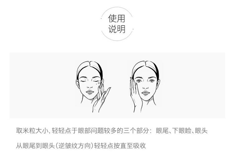 质地清清爽爽一点都不黏腻,吸收炒鸡快,改善眼部肌肤的干纹、黑眼圈等老化问题