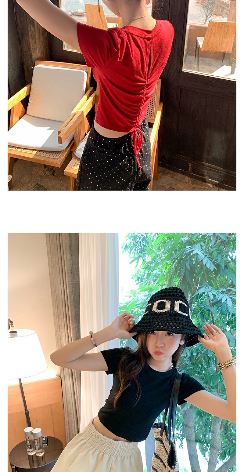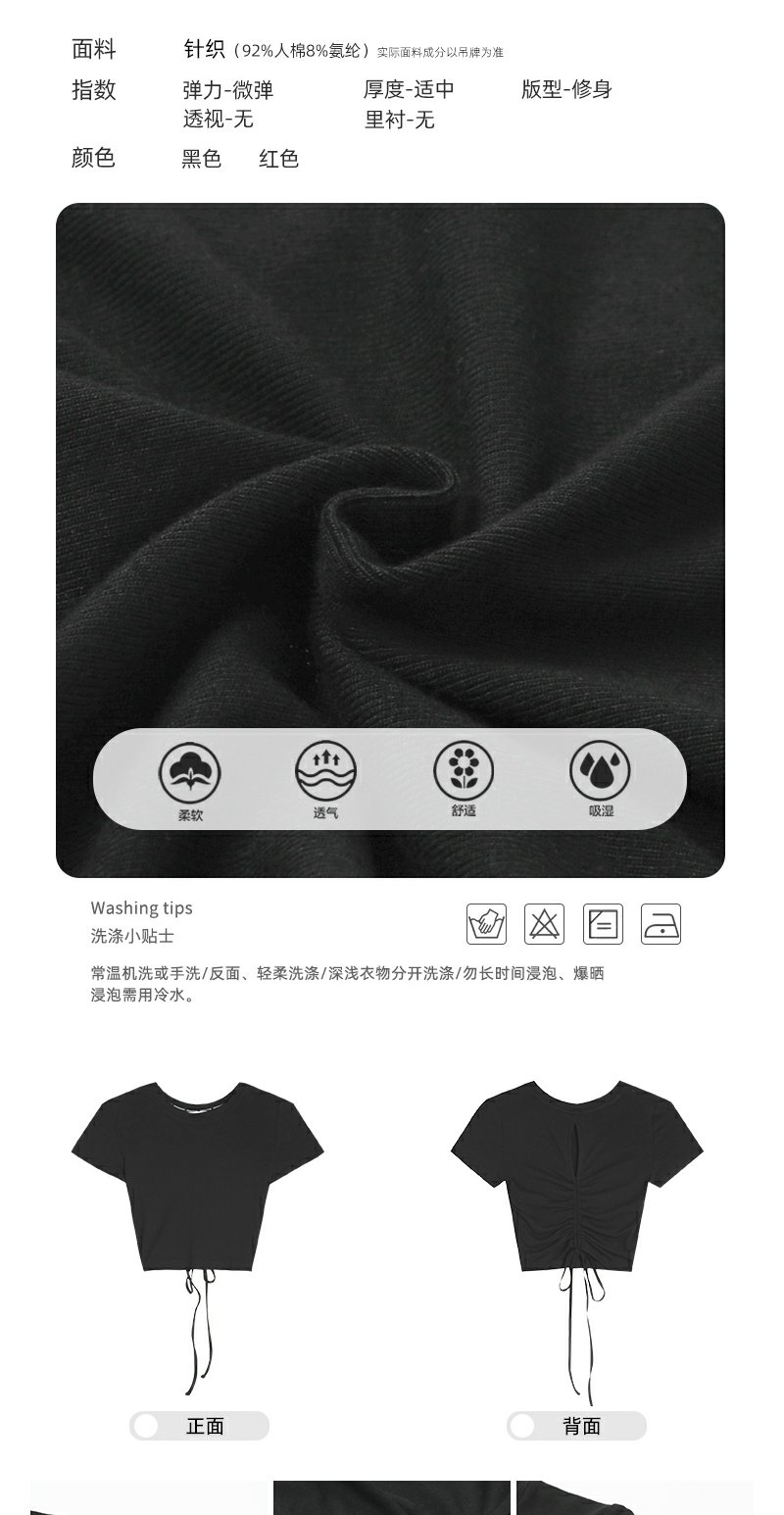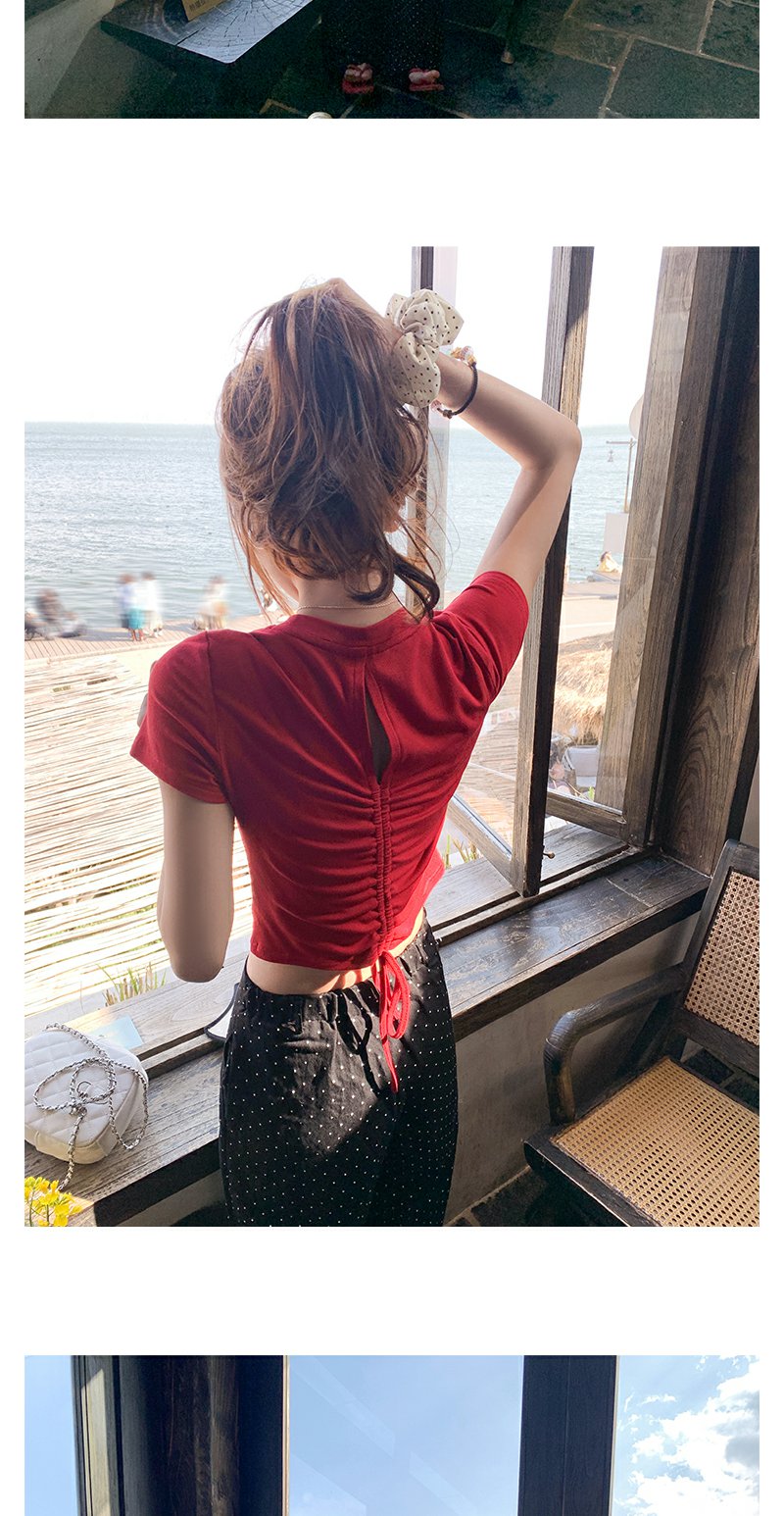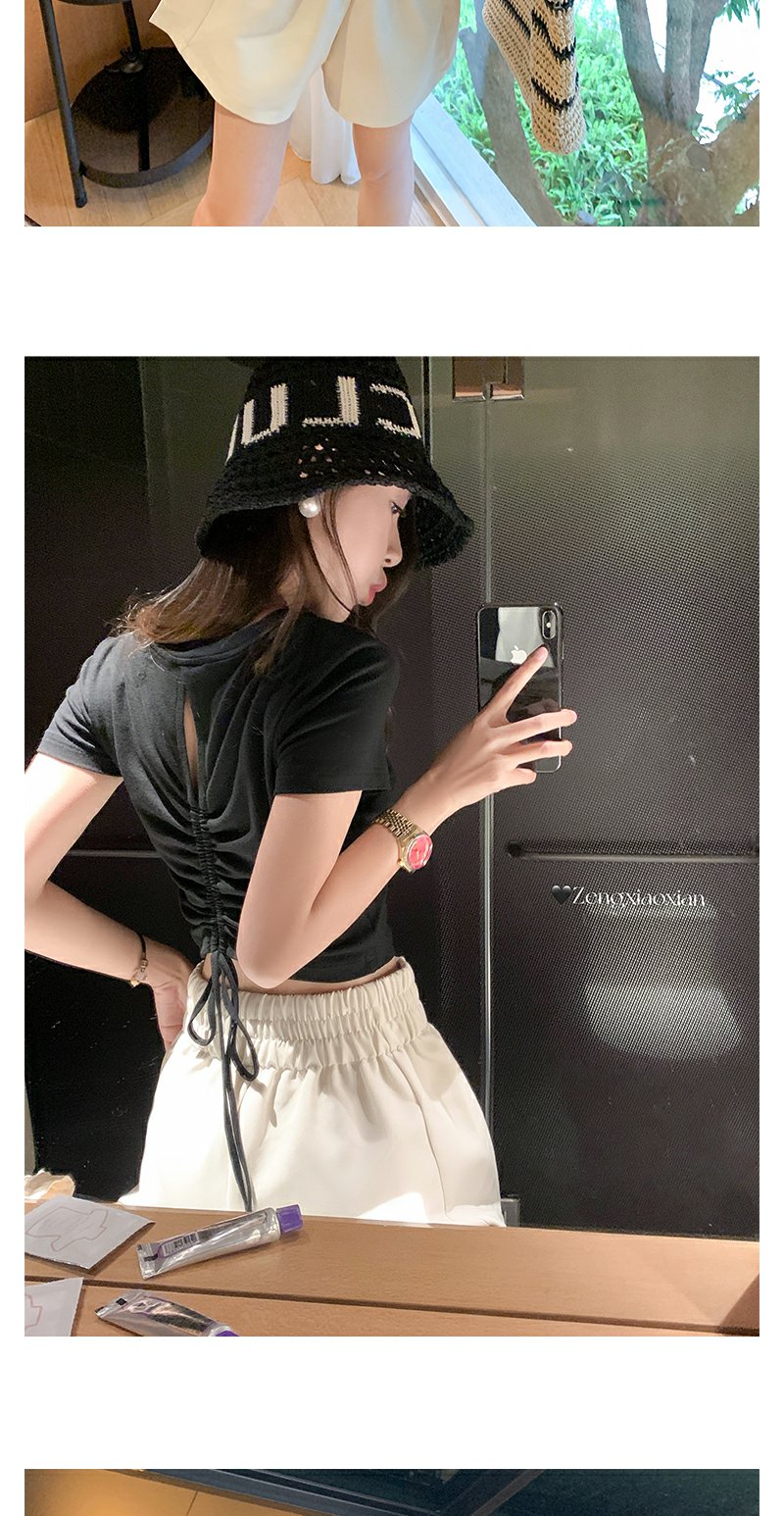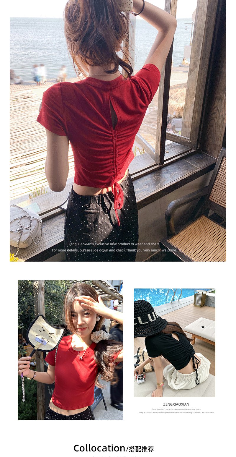 <曾小咸推荐>现货秒杀!微信超特价!设计感2色短款后背系带短袖T恤 日常89.99 立减50 秒杀39.99!