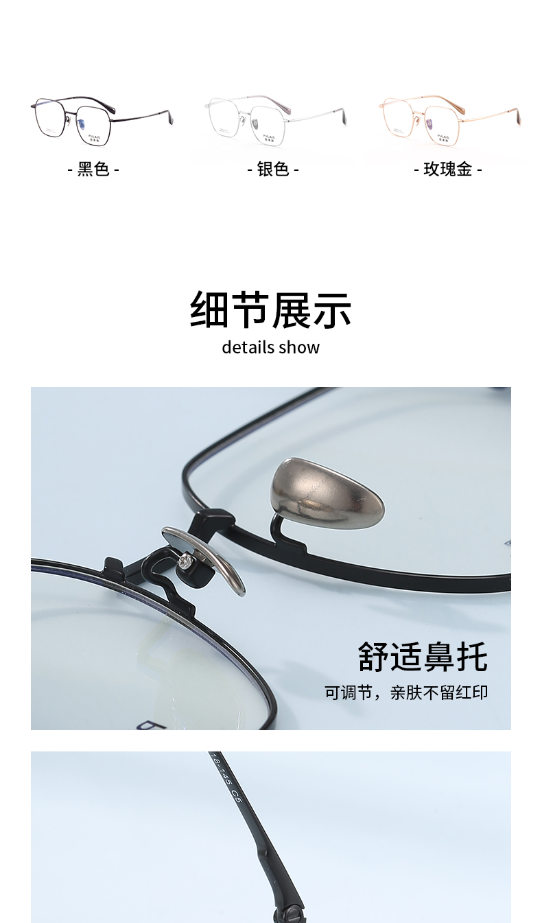 普莱斯光学镜框B8092 经典全框 半钛材质 舒适鼻托 稳固桩头 复古休闲 三色可选