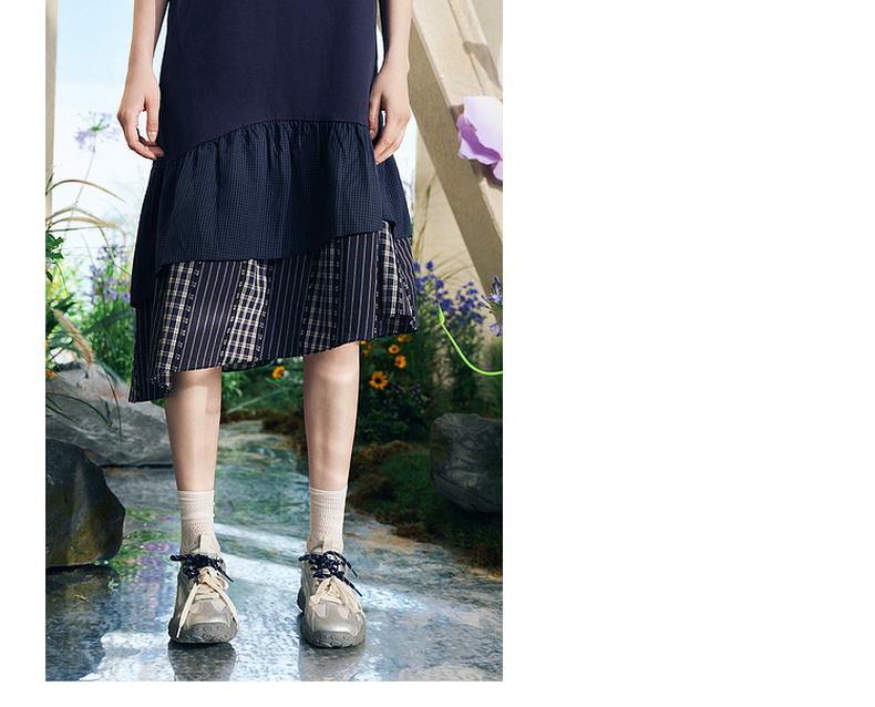两三事一人相伴 春夏新款时尚单边背带裙系扣高腰牛仔半身裙S23CKB050