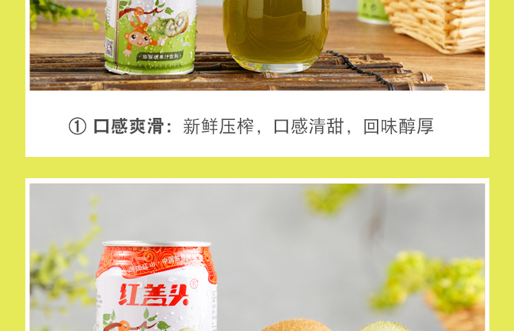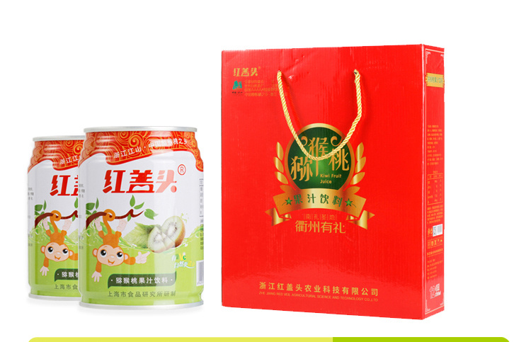红盖头猕猴桃果汁饮料 奇异果粒汁 果味整箱罐装饮品240ml*12听