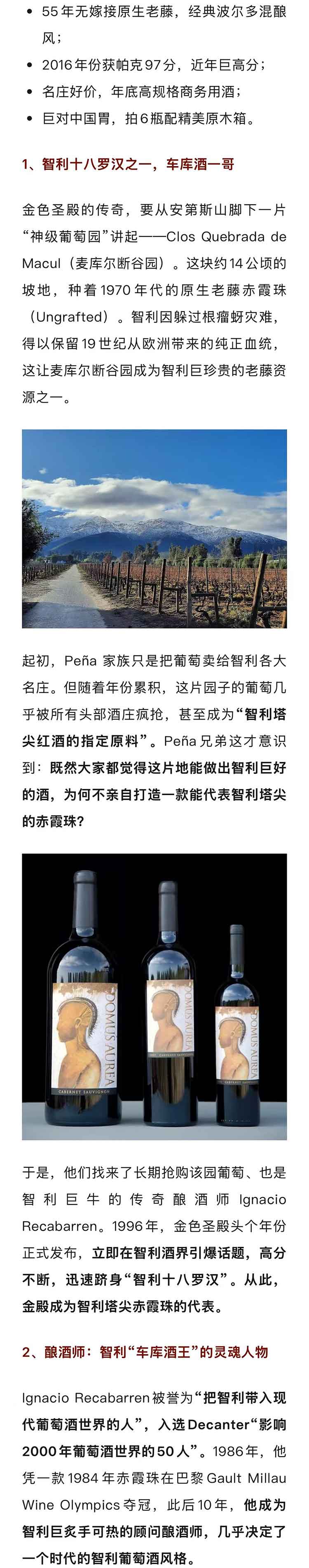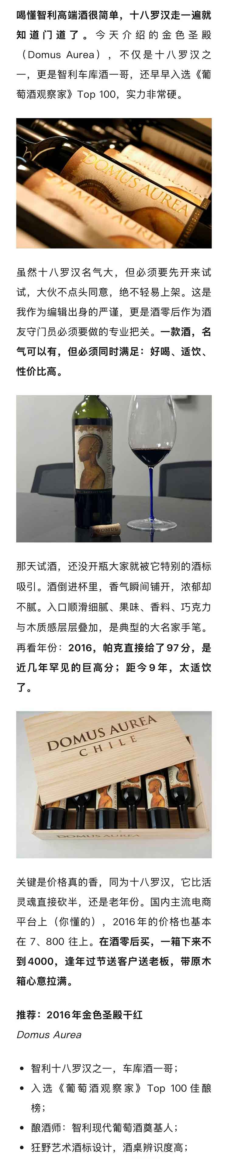 【智利车库酒一哥】智利十八罗汉2016年金色圣殿干红