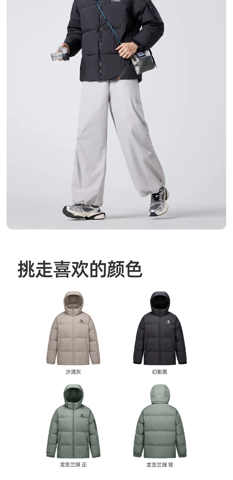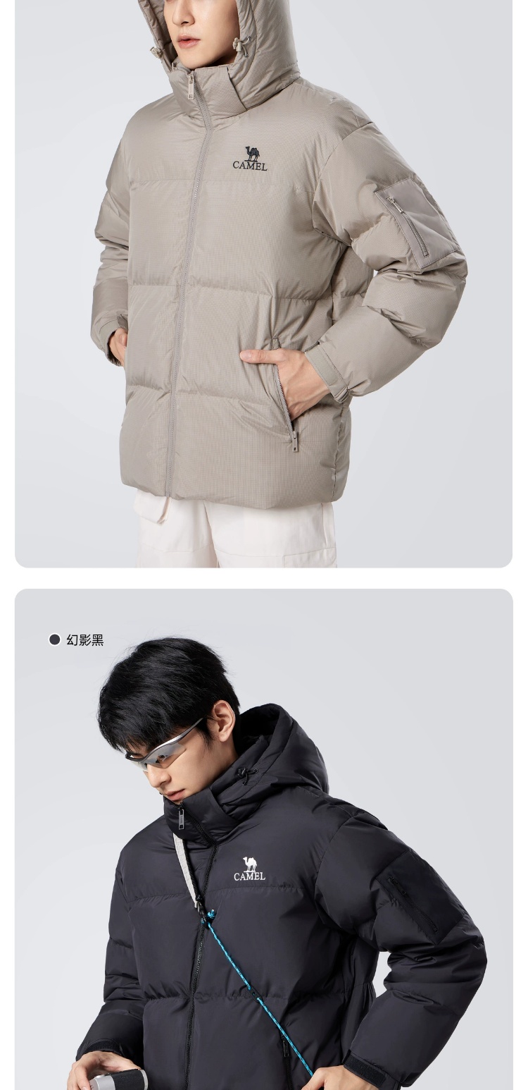 骆驼男装羽绒服男冬季2025新款加厚短款连帽面包服防水防寒外套 M14CR07689
