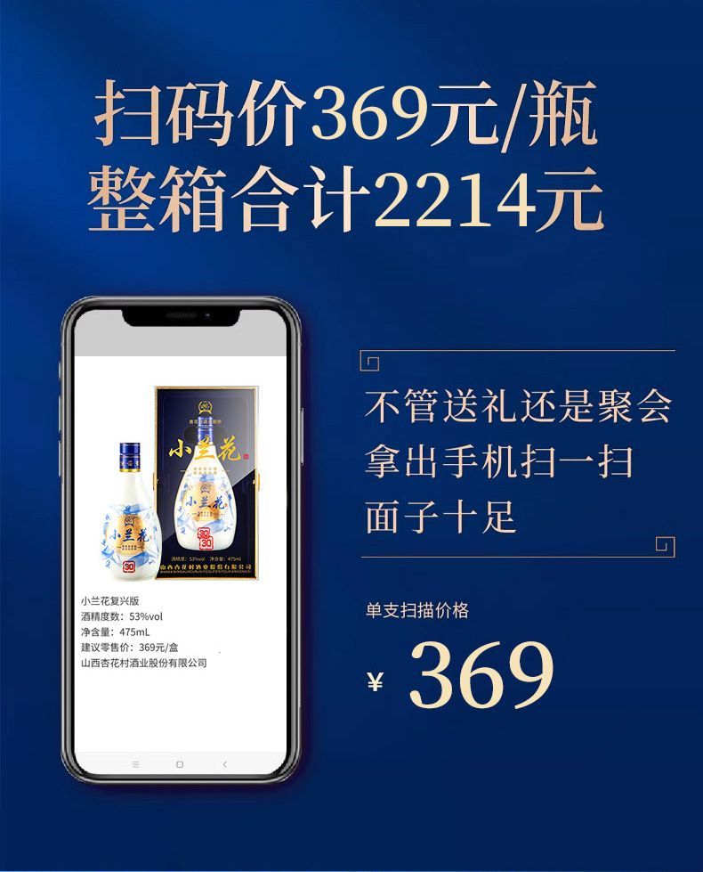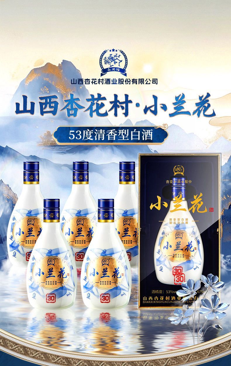 山西杏花村小兰花酒 53度清香型白酒 整箱475ml*6瓶包邮礼盒装宴席送礼