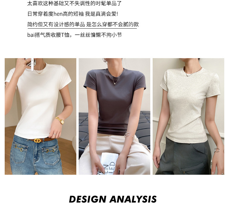 纯棉小圆领正肩短袖t恤女式春夏季可外穿大码修身打底衫大码女装
