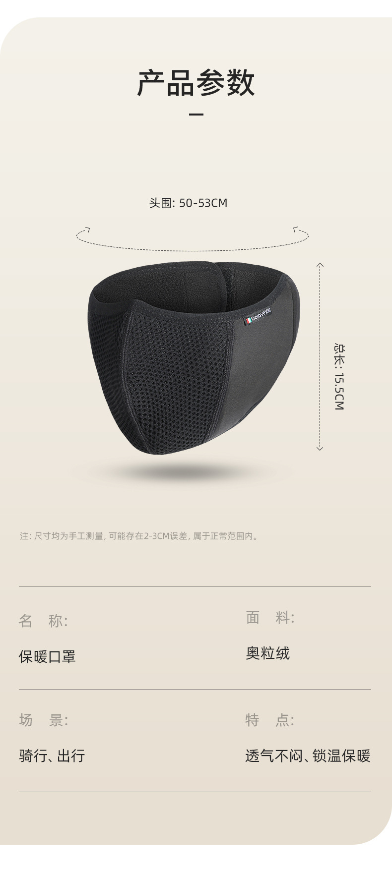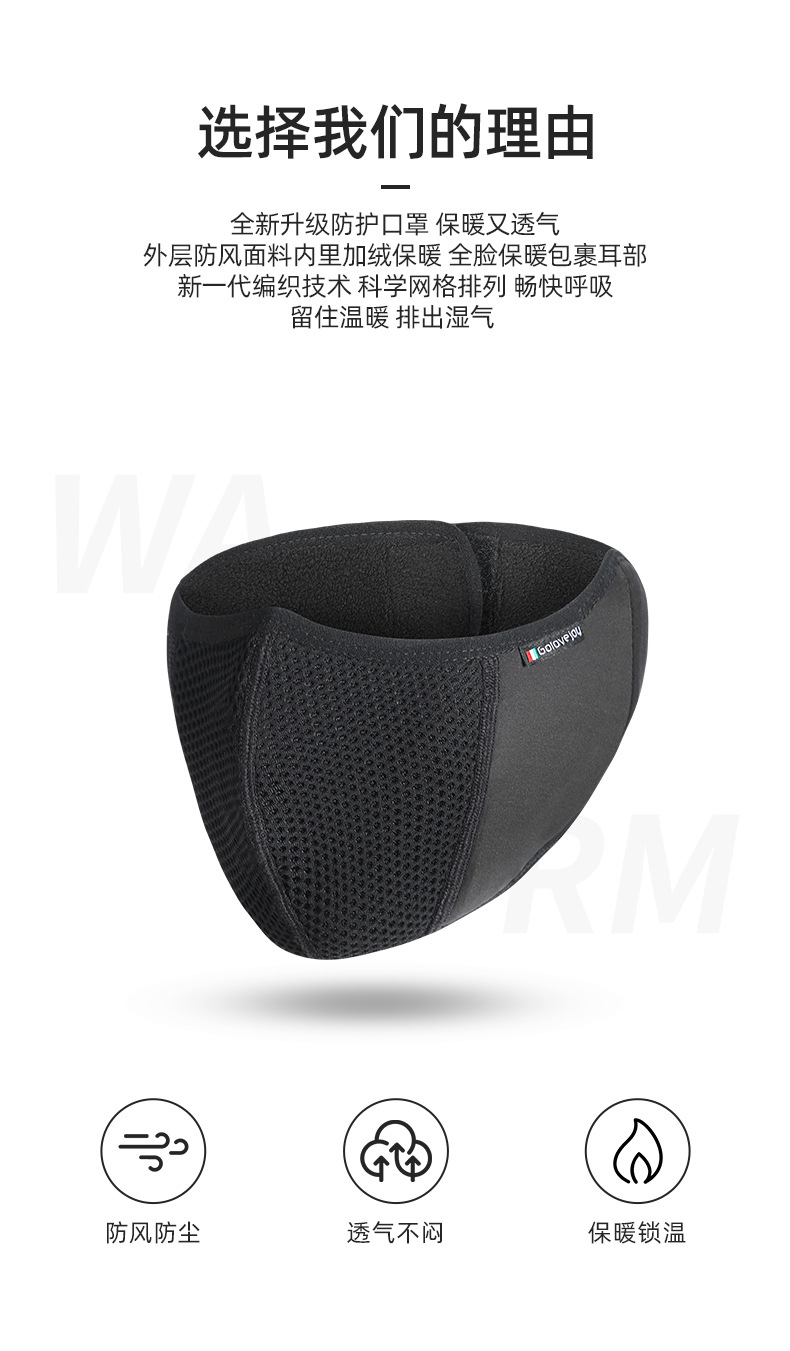 冬季新款保暖防风面罩奥粒绒加绒护耳颈户外骑行滑雪防尘透气口罩