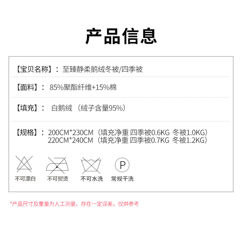 床笠尺寸与拍下的鹅绒被大小进行赠品尺寸匹配
