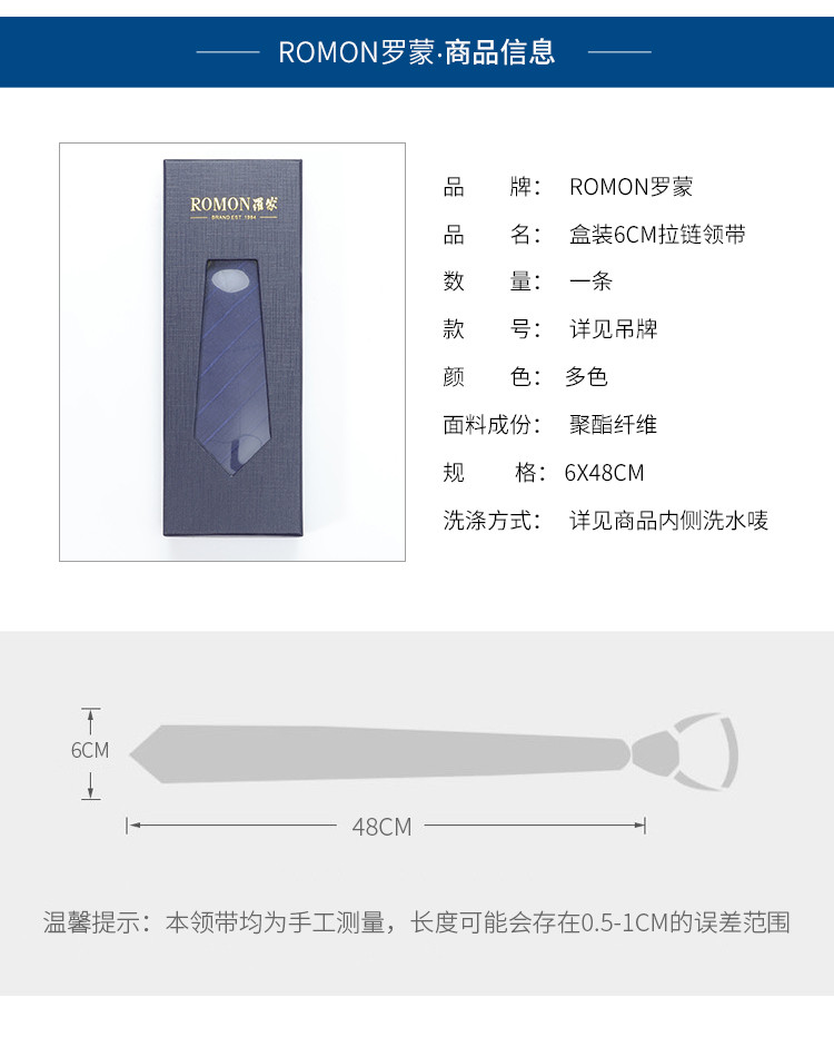 【礼盒款】罗蒙男士领带商务职业面试通勤百搭日常6厘米拉链斜纹领带