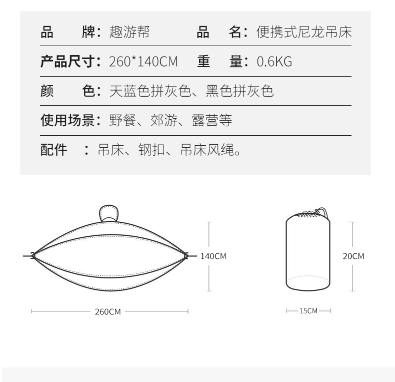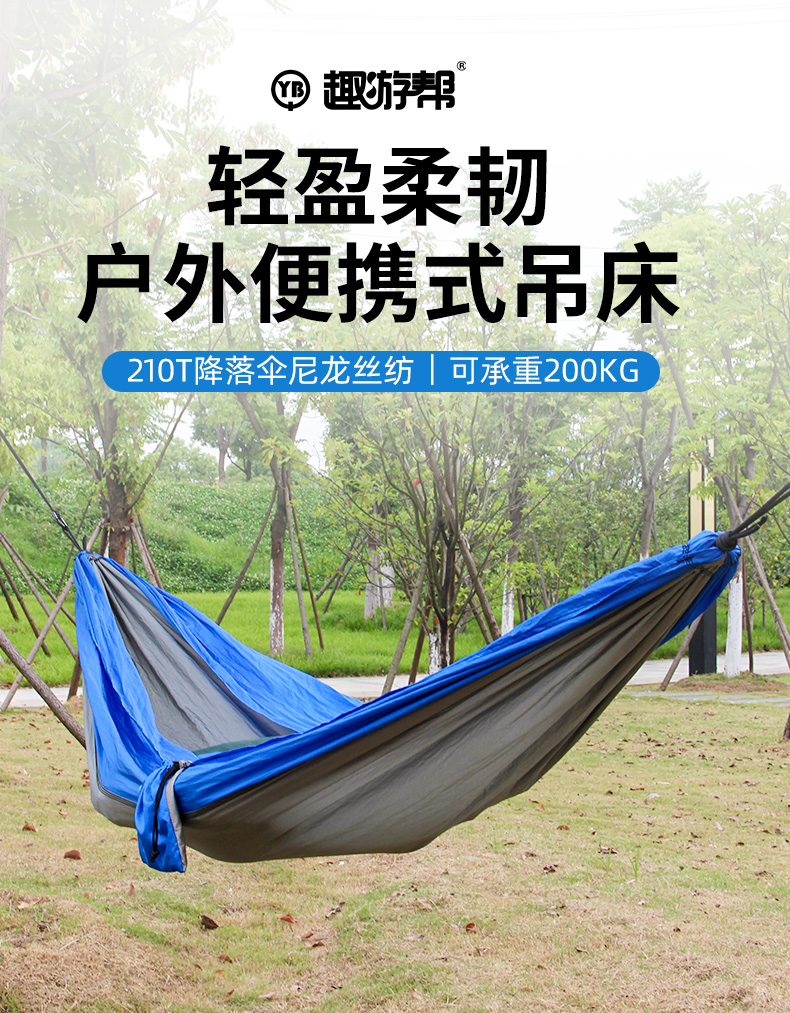 【多样屋专柜】趣游帮降落伞尼丝纺轻量化吊床(Y11)蓝拼灰
