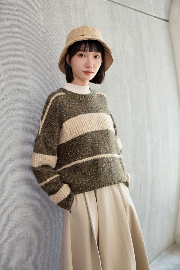 LNNNS 休闲舒适拼色条纹毛衣 21143