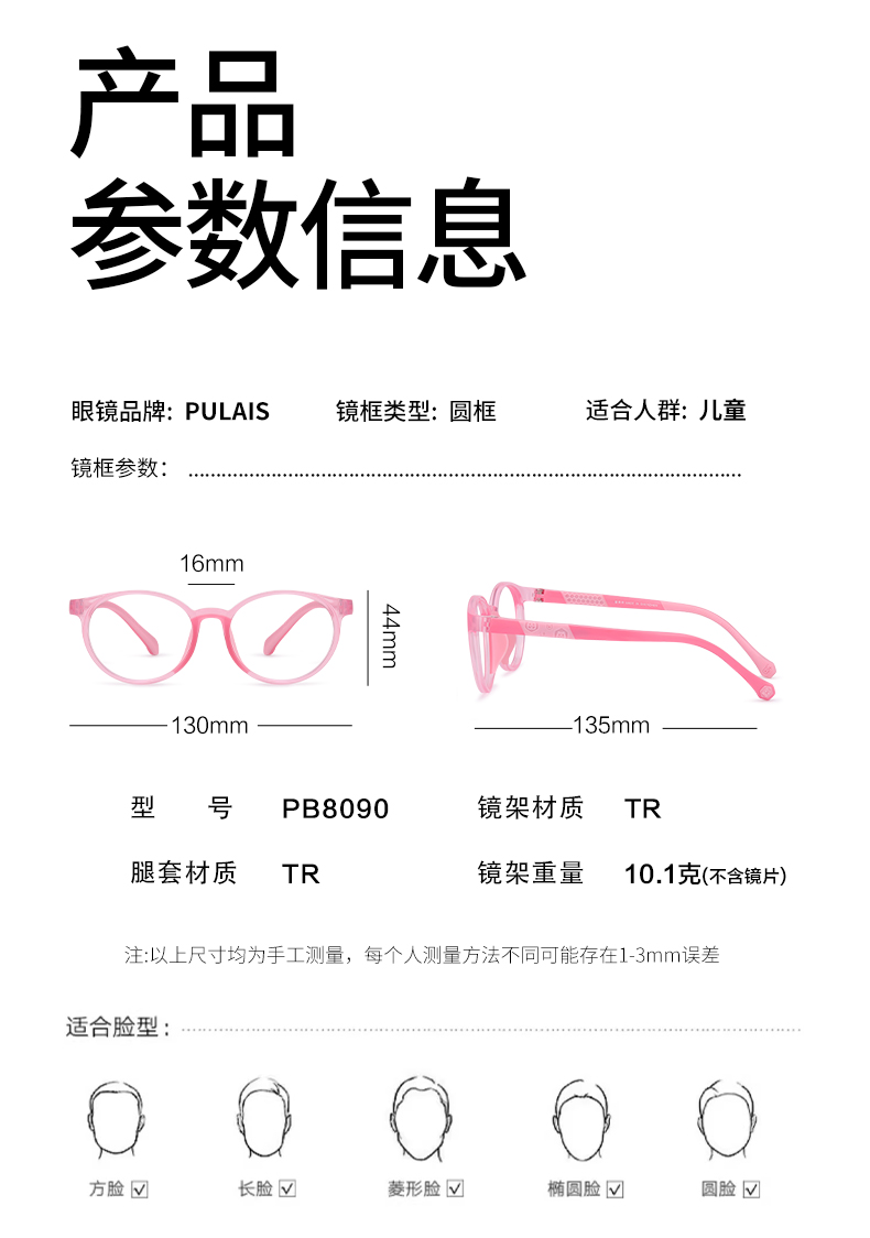 普莱斯儿童镜框PB8090 柔韧TR90材质 男女通用 多色可选