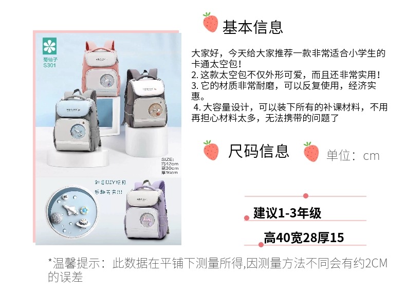 【减负太空包】儿童可爱小学生日系轻便护脊书包,日系可爱设计,小学生的贴心好伙伴!大容量又便携,爸妈放心选✔️