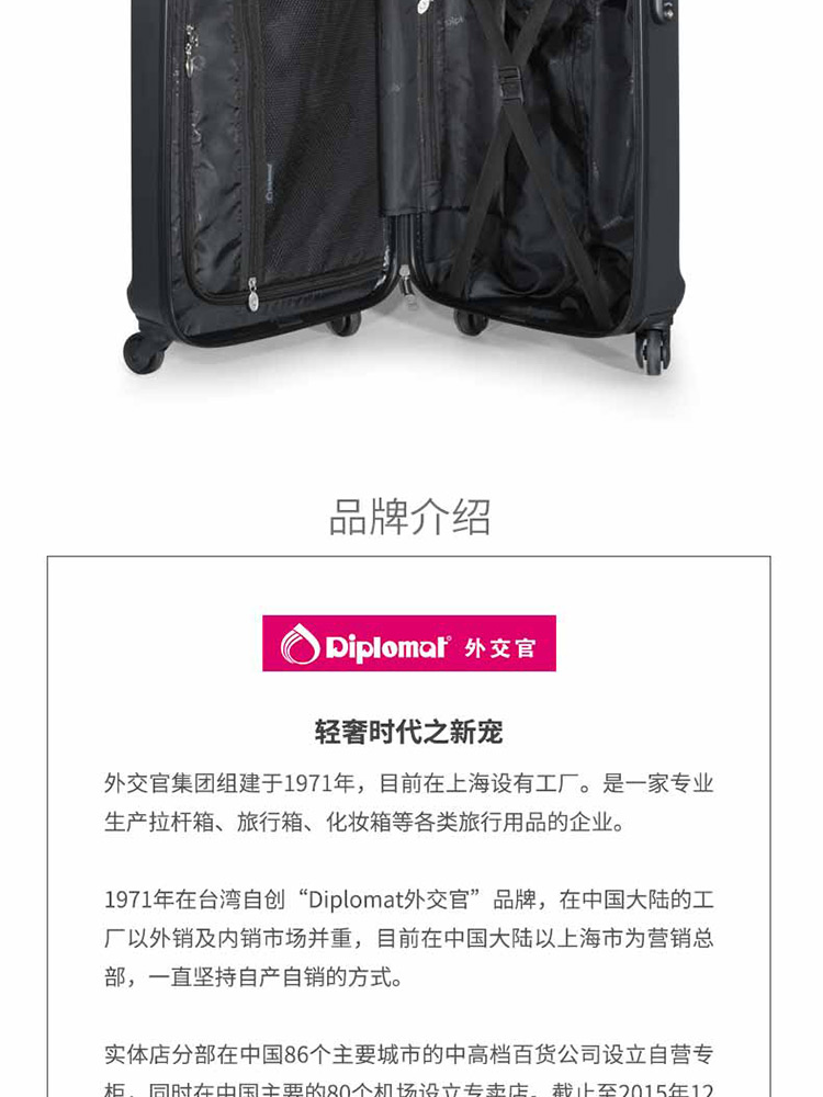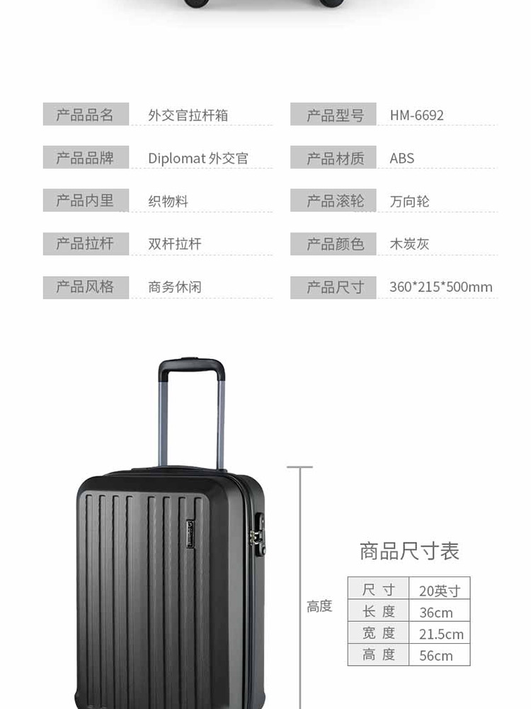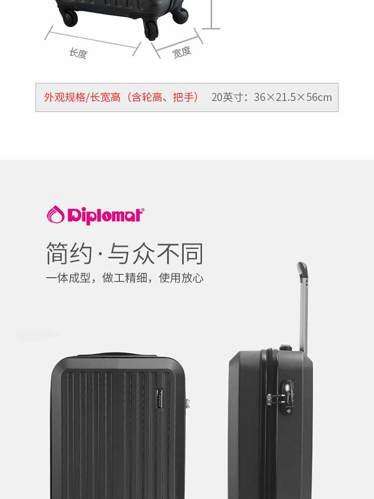 【自营】 外交官Diplomat 万向轮拉杆箱 行李箱 20寸 木炭灰/孔雀蓝