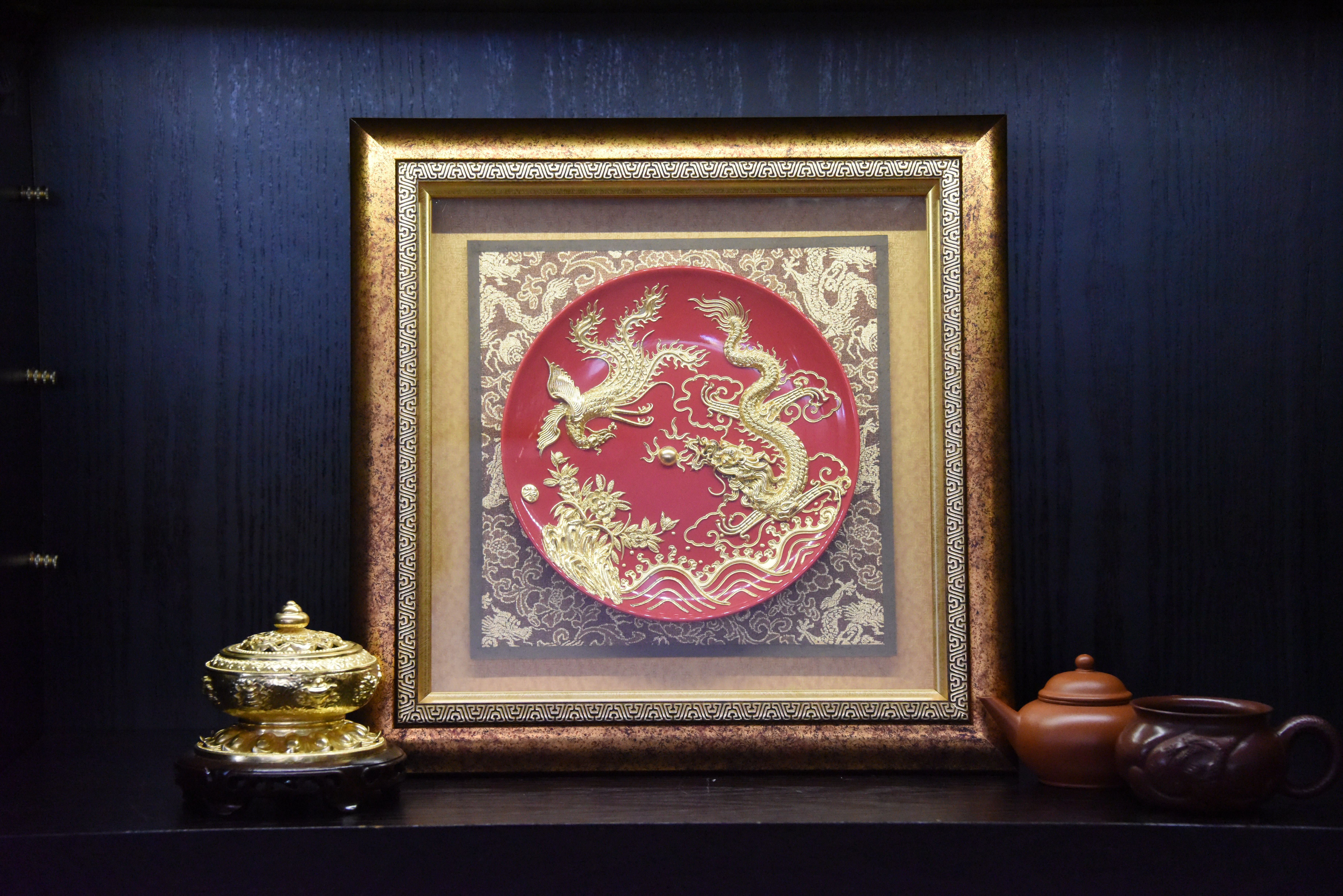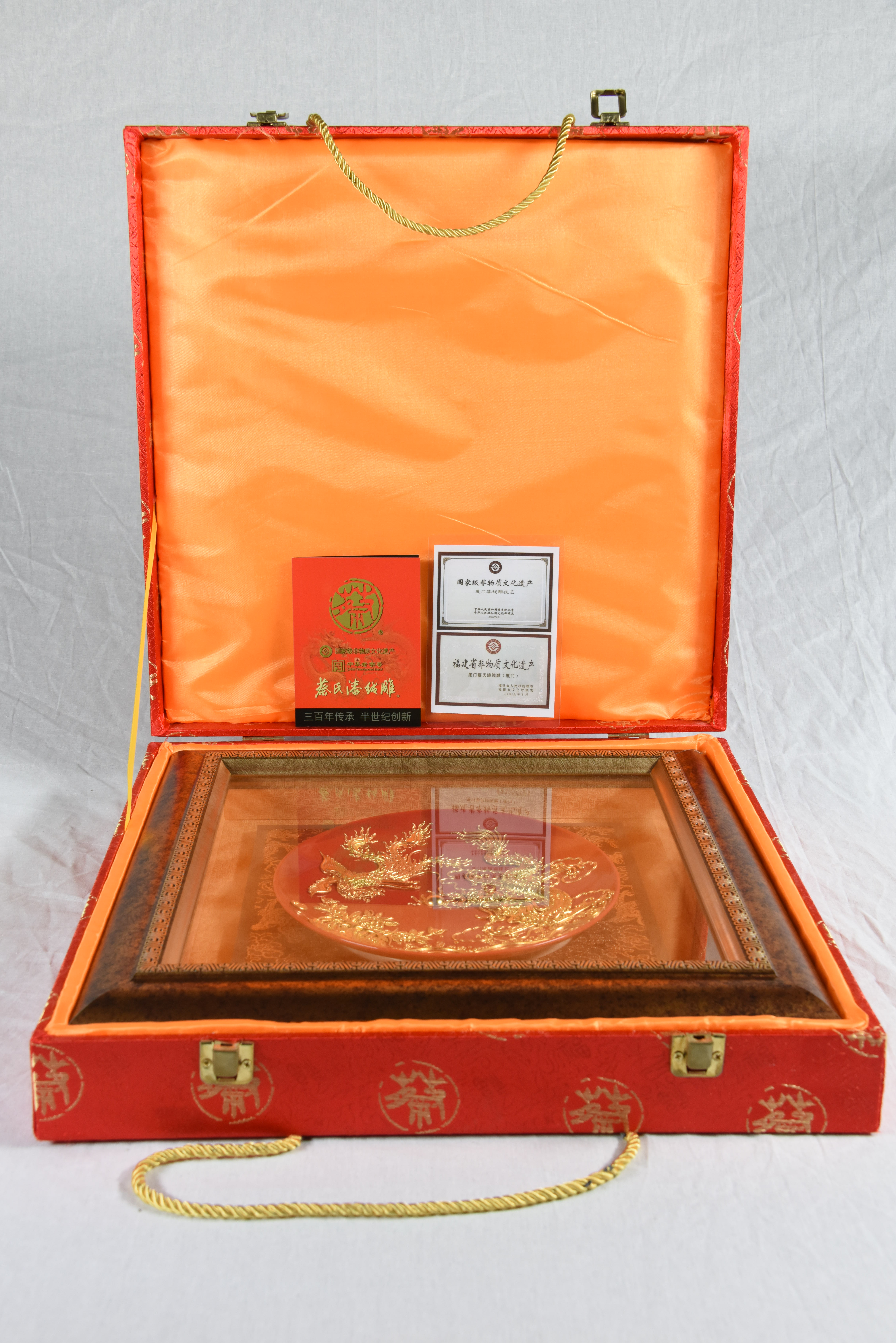 中华老字号牡丹龙凤盘挂件(8英寸红)送礼必备