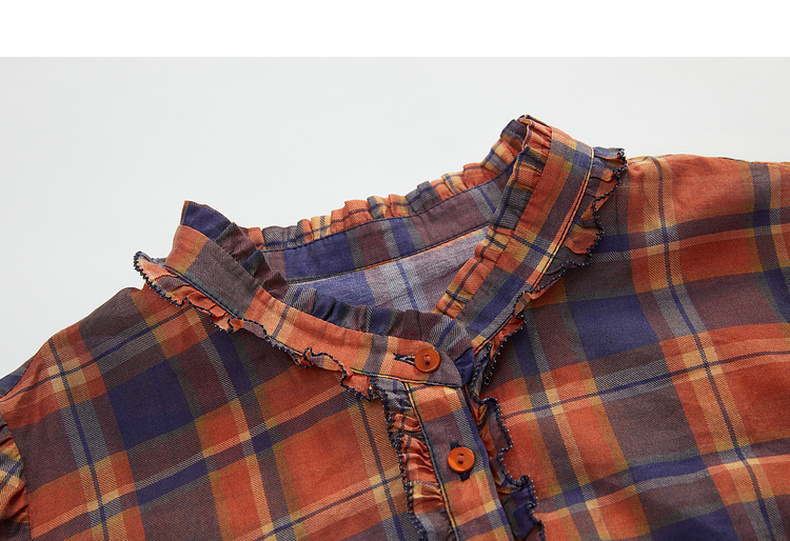 谜底格子衬衫长袖女2024秋款复古文艺风百搭莱赛尔衬衣247MC5218