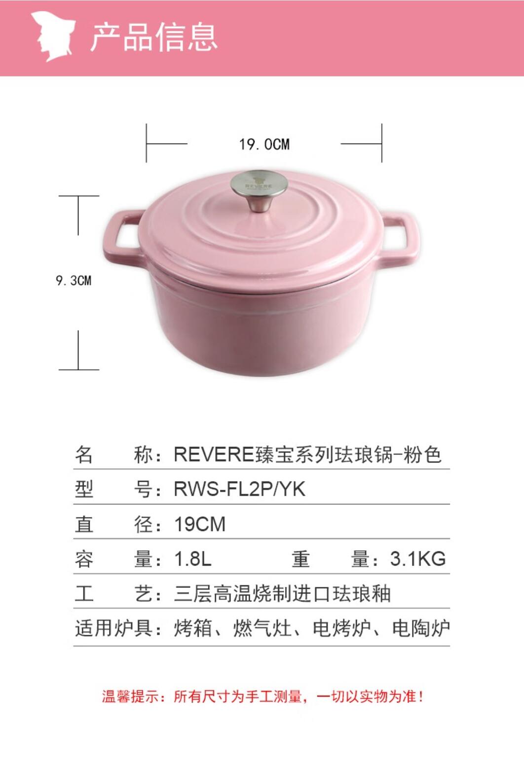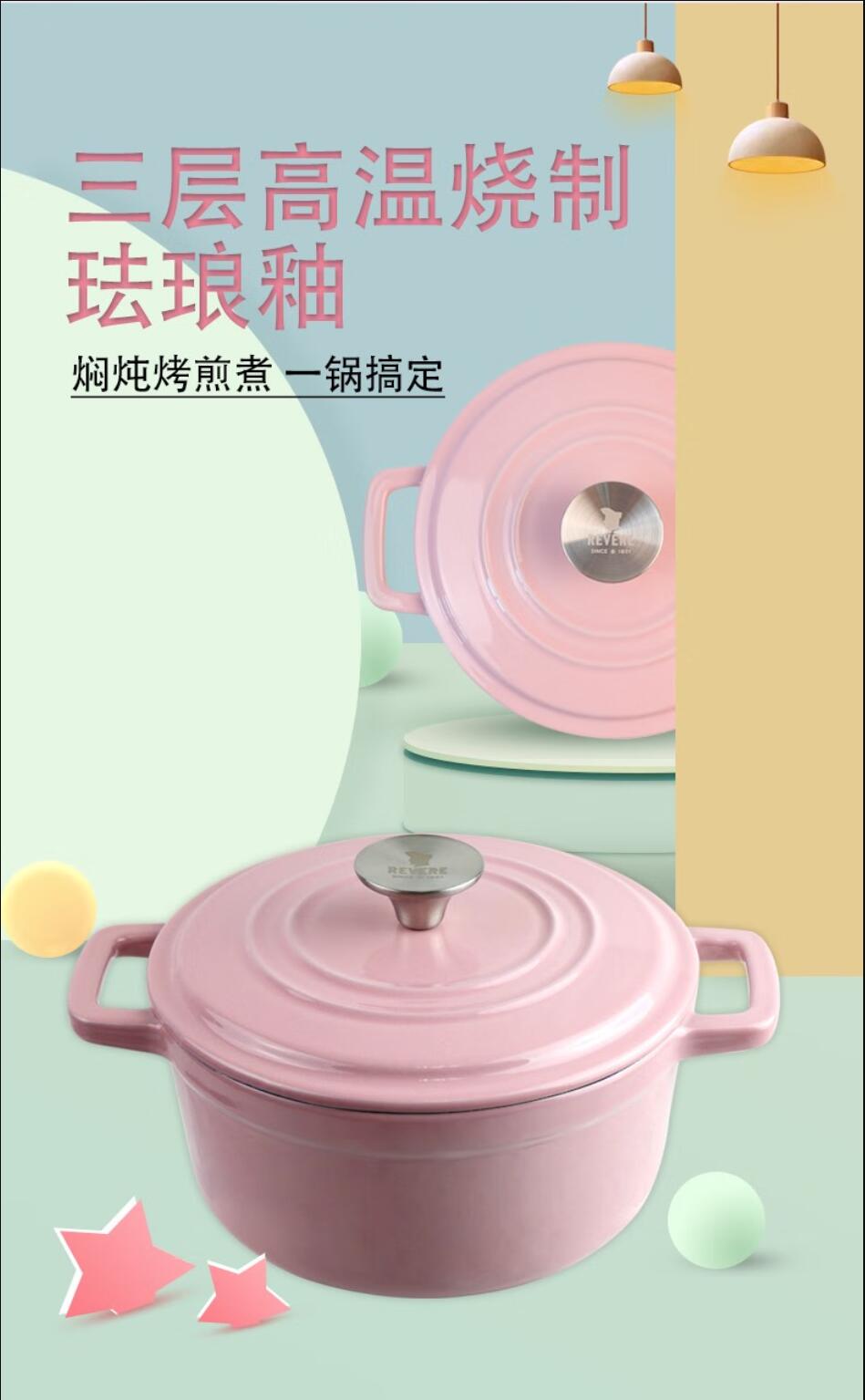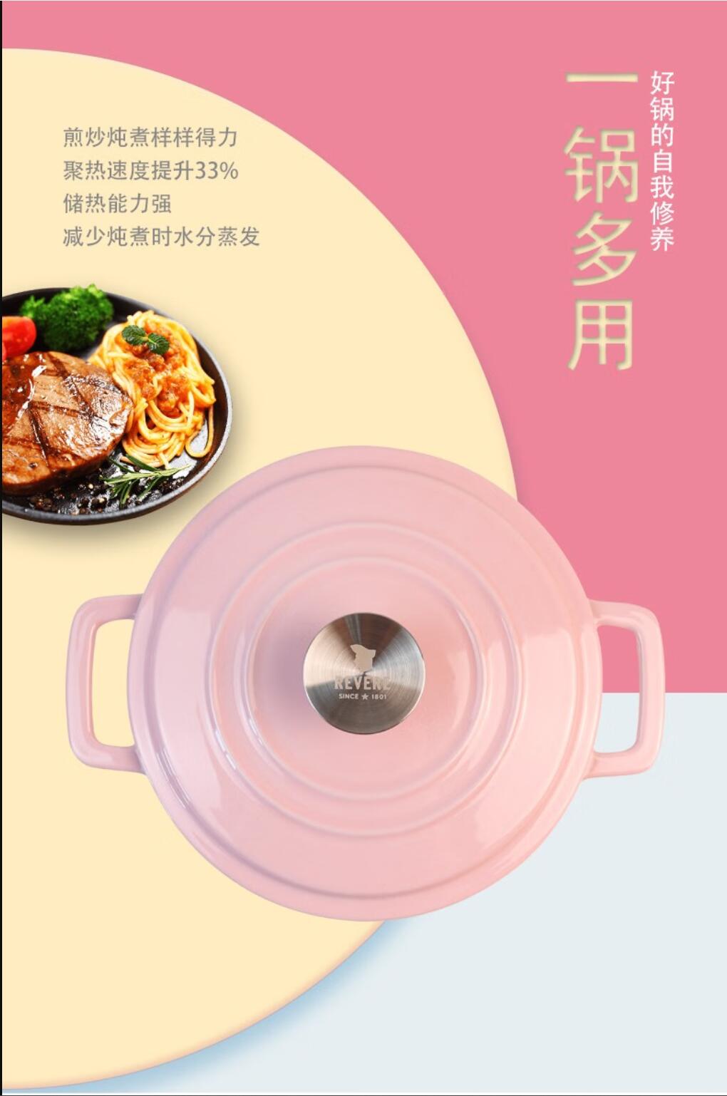 【小家电】康宁Revere幻彩系列珐琅锅粉色 HF