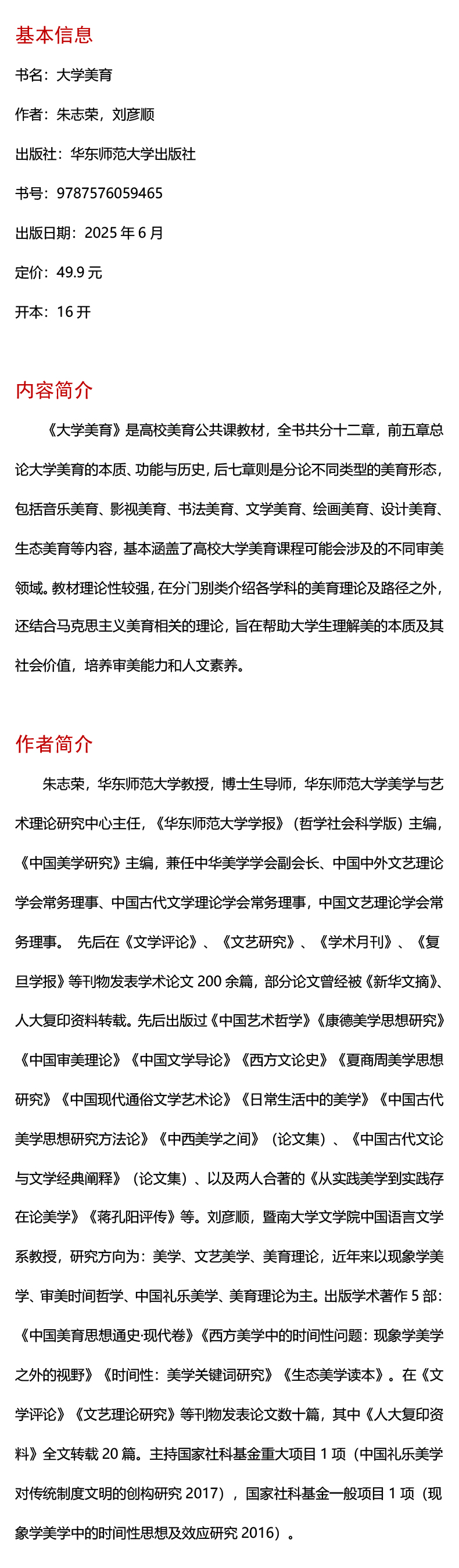 大学美育 朱志荣 刘彦顺 高校美育公共课教材