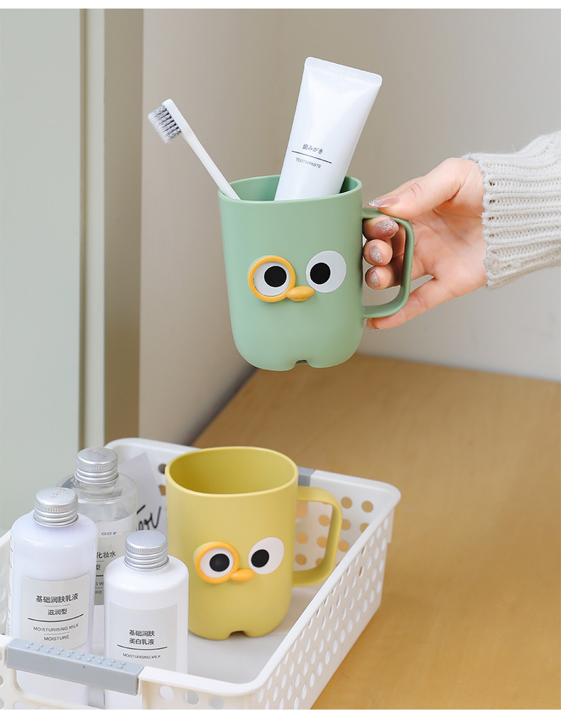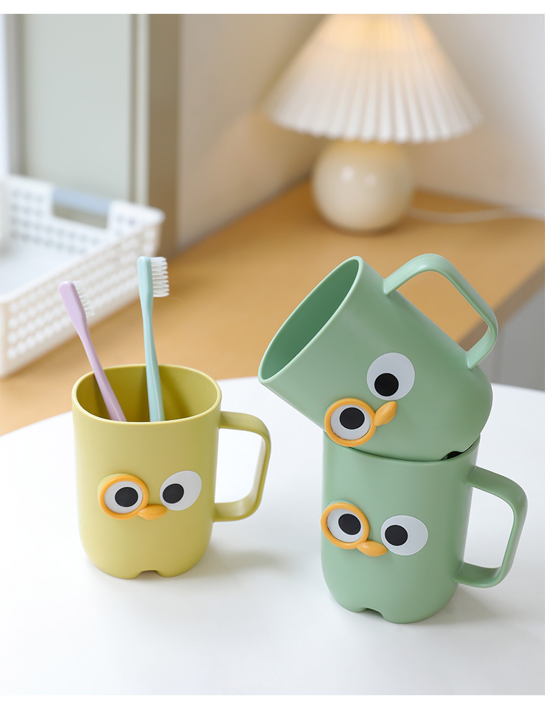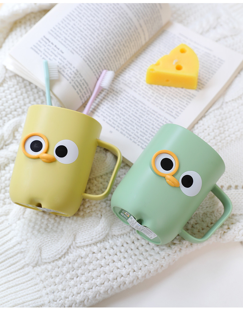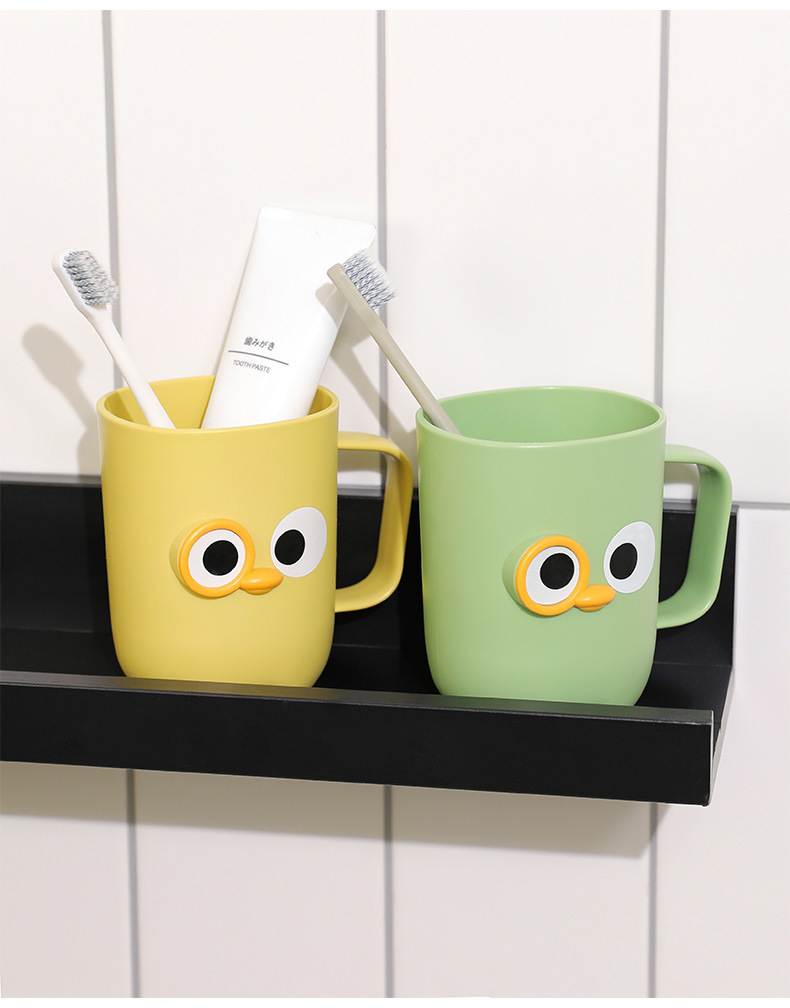 【卡通大眼睛系列漱口杯】PP聚丙烯材质,材质轻盈 无毒无味,耐脏耐摔耐用!通用刷牙杯塑料杯带手柄旅行便捷洗漱杯Y