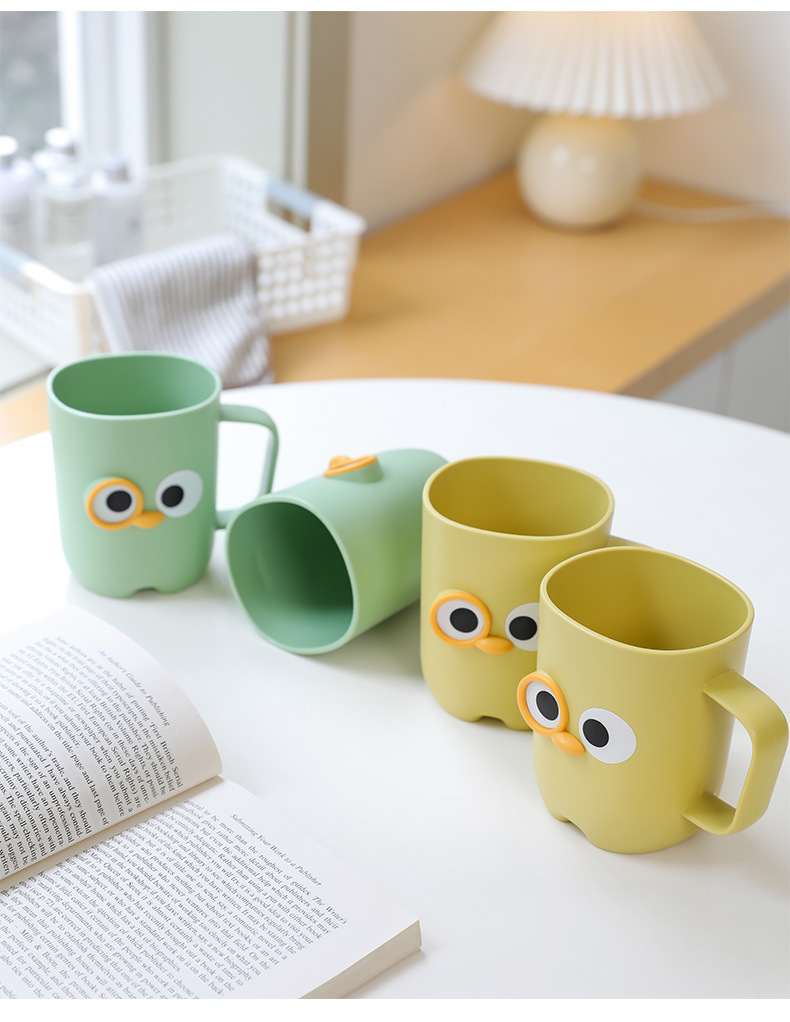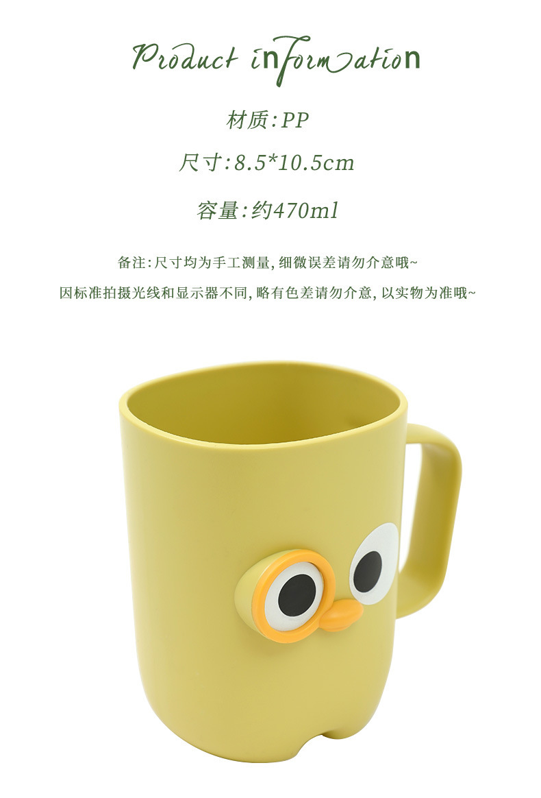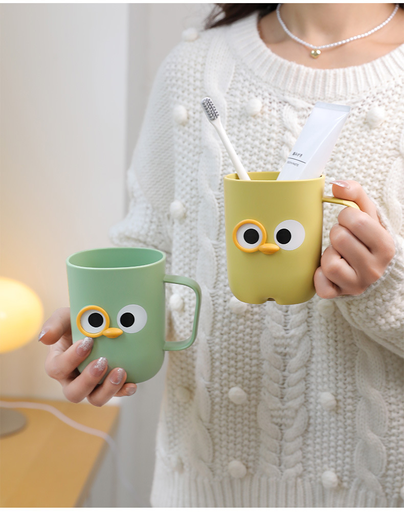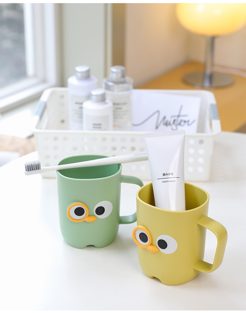 【卡通大眼睛系列漱口杯】PP聚丙烯材质,材质轻盈 无毒无味,耐脏耐摔耐用!通用刷牙杯塑料杯带手柄旅行便捷洗漱杯Y