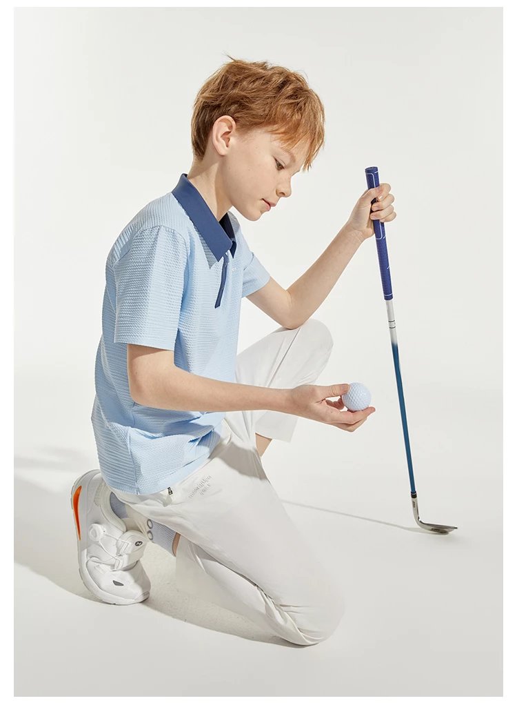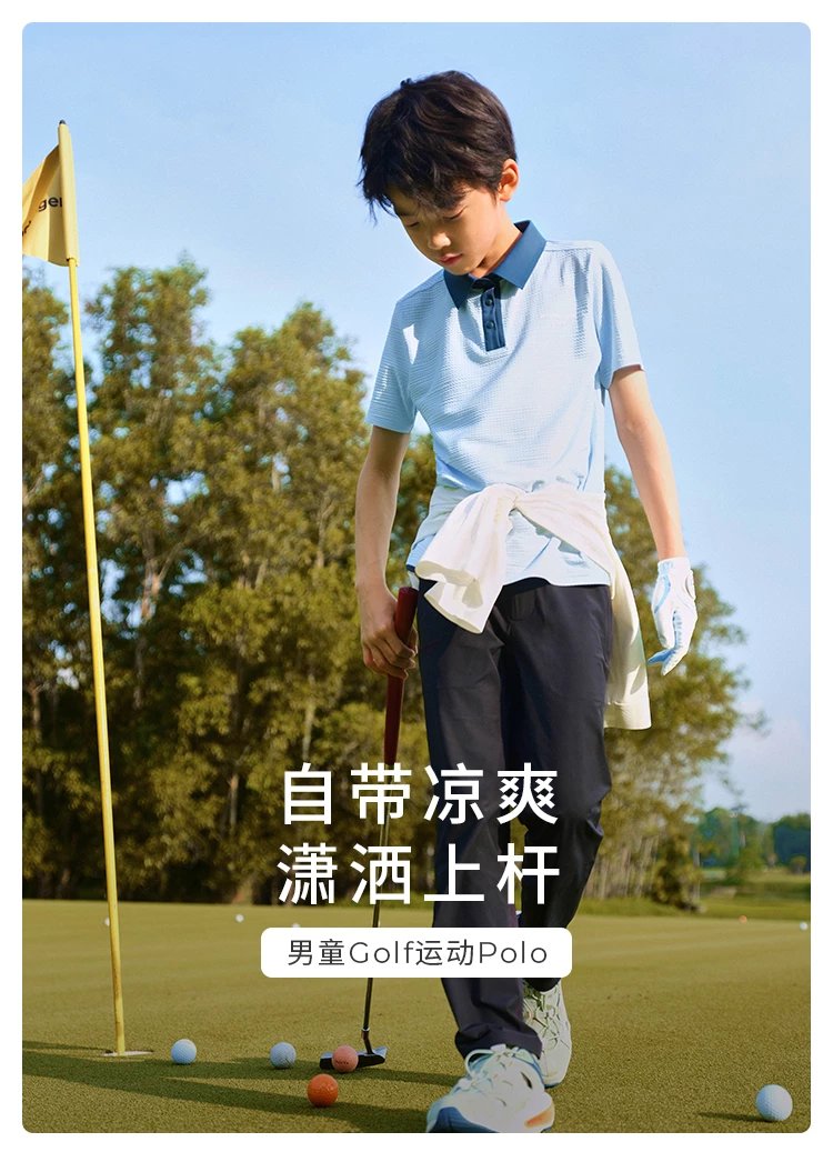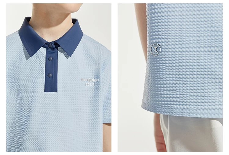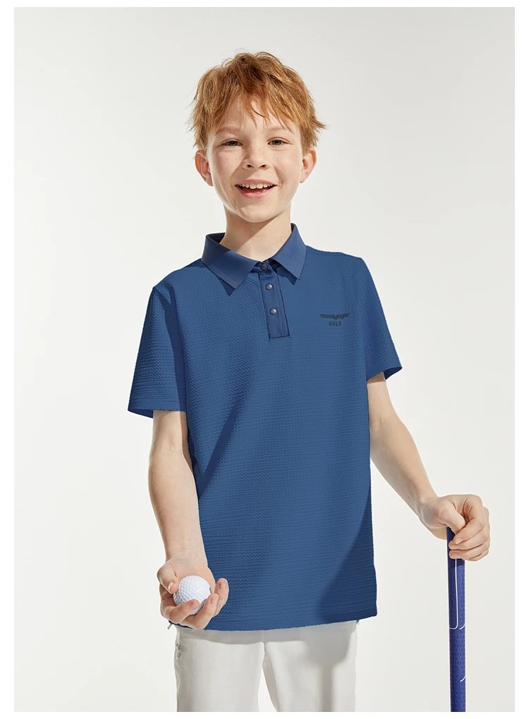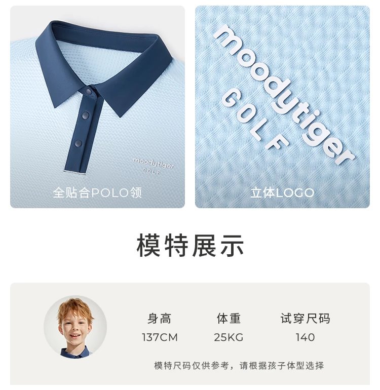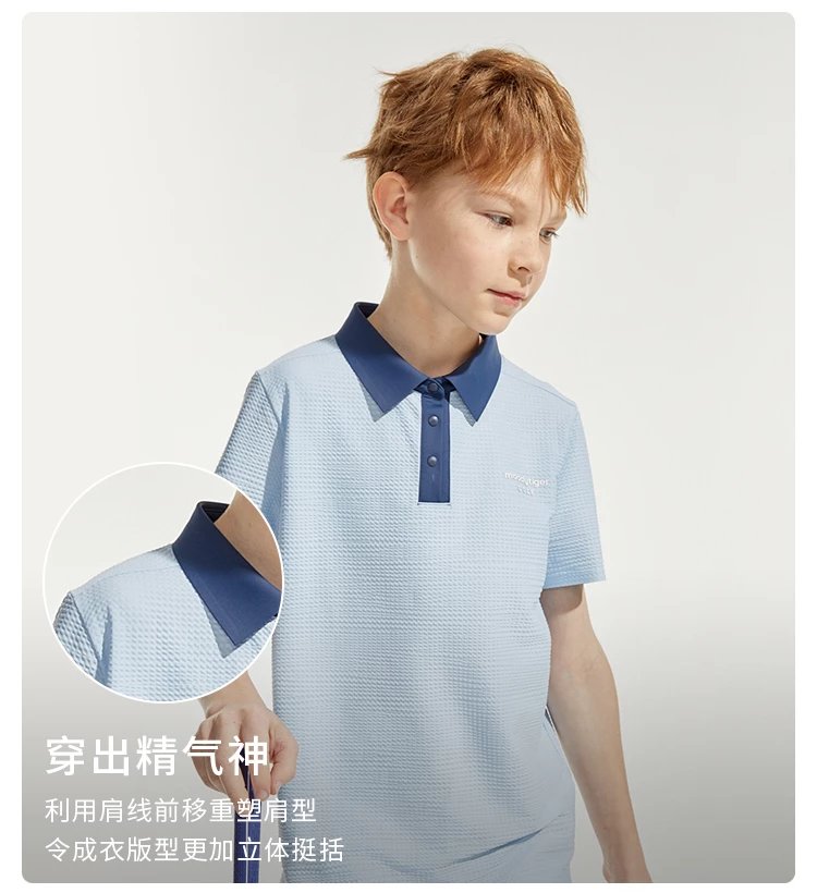 【24年夏新品】【高尔夫系列】moodytiger男童运动polo衫24年春新款拼接透气上衣