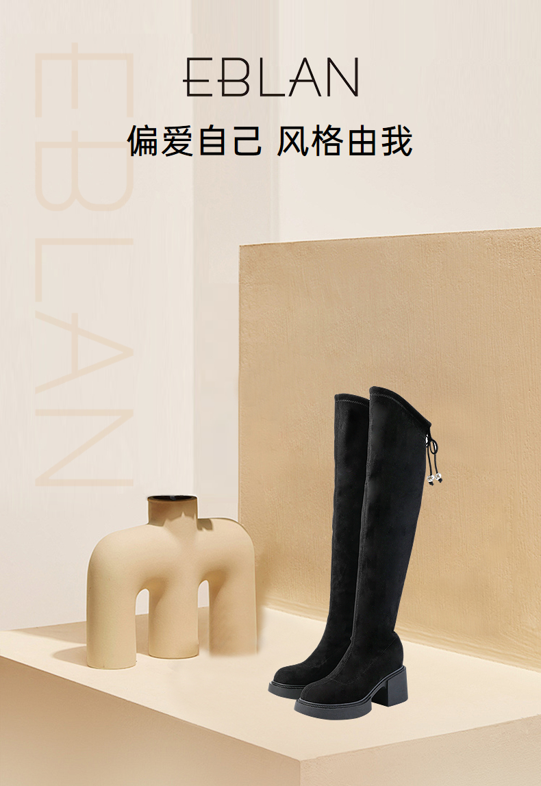 伊伴冬季长筒弹力靴女鞋B25500101