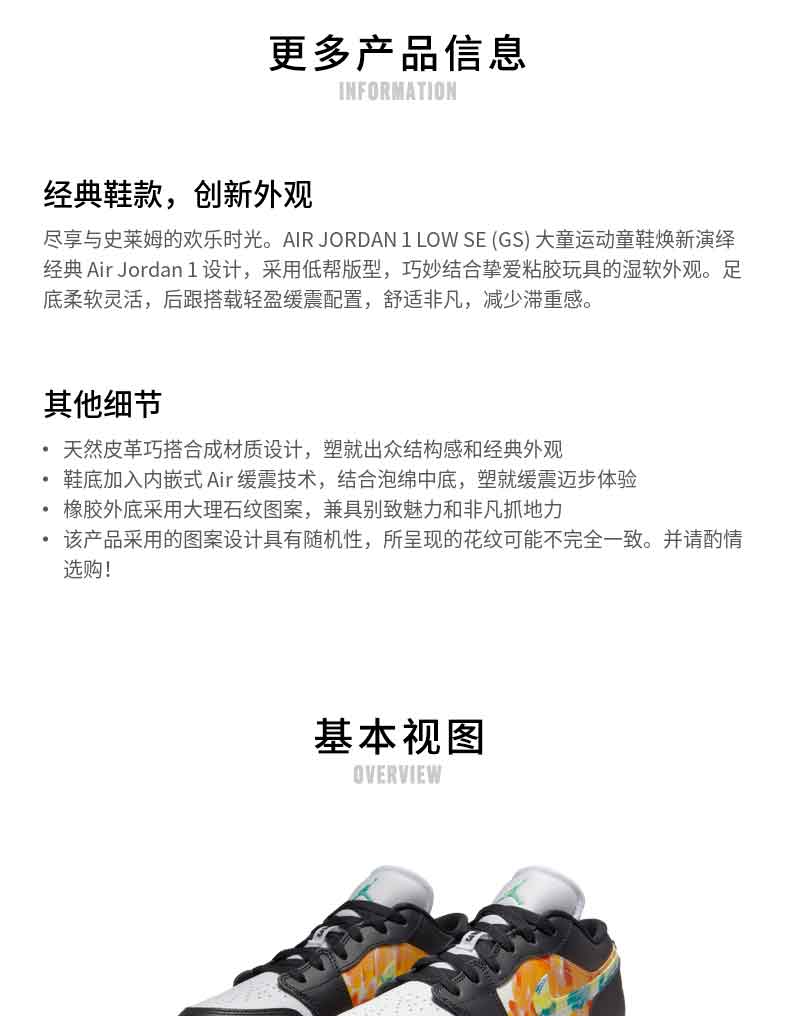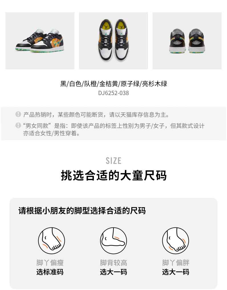 小耐克AIR JORDAN 1 LOW SE AJ1大童运动鞋休闲复古DJ6252-038