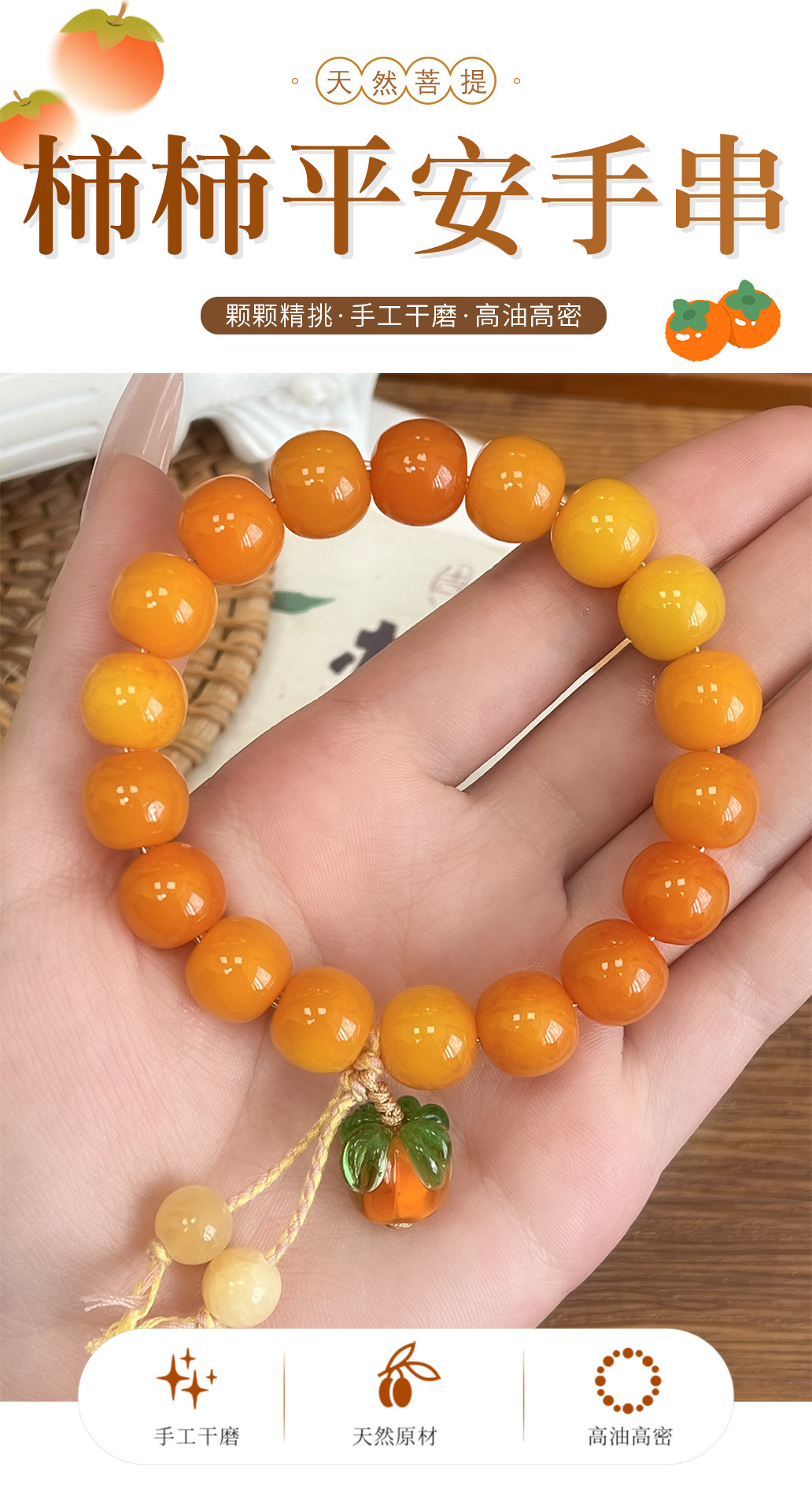 「19.9到手!柿柿平安」新款菩提根单圈手串 佛珠手链时尚饰品