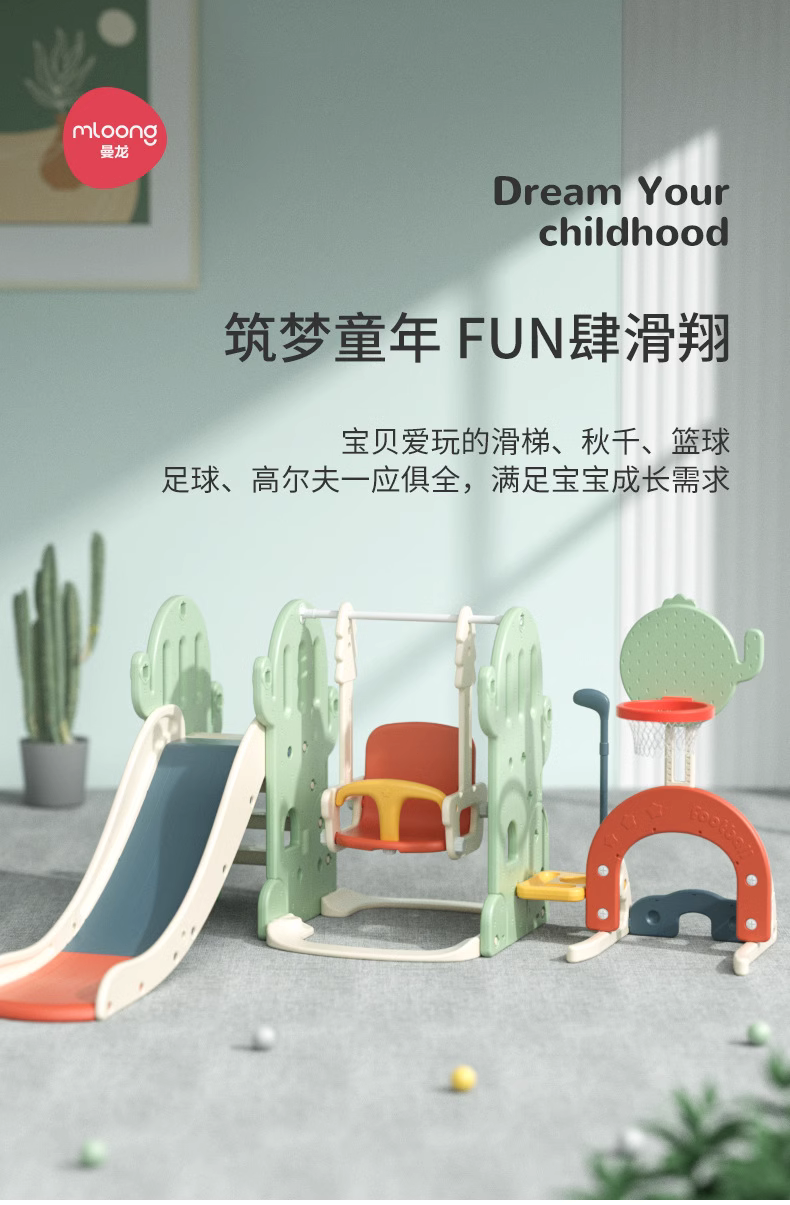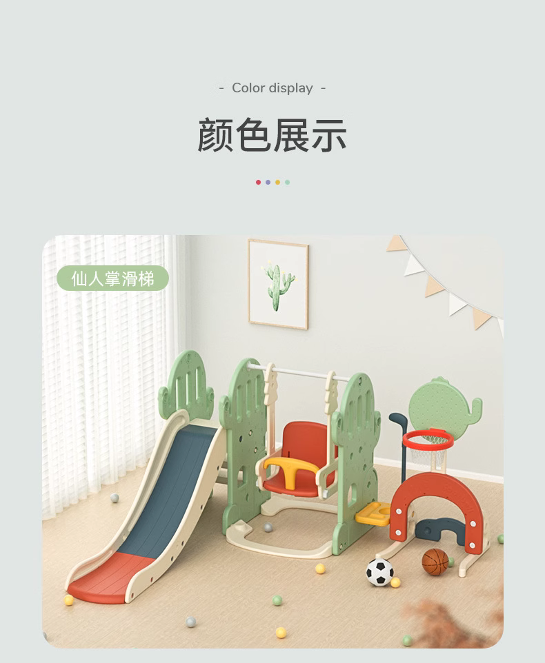 曼龙仙人掌滑梯旋转星球滑梯儿童室内滑梯多功能小型秋千玩具