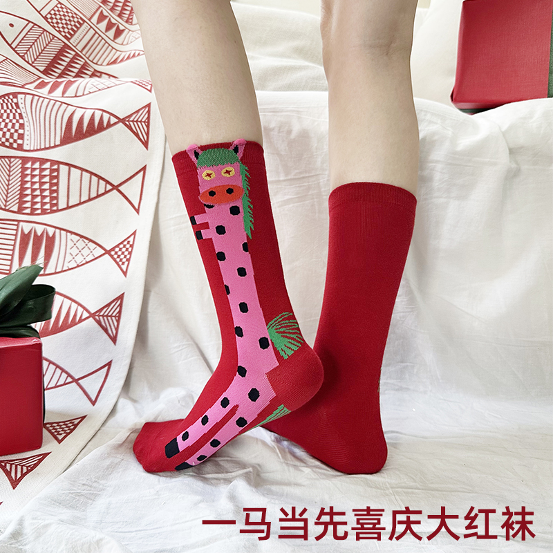 壁虎瑜伽【2601WZ495】一马当先喜庆大红袜【5天发货】