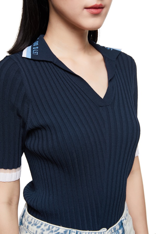 AVA 黄色夸张翻领修身毛衫 8764