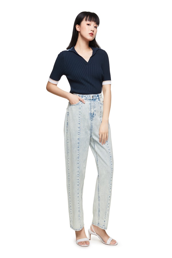 玛丝菲尔·素 拼色V领修身上衣 9001