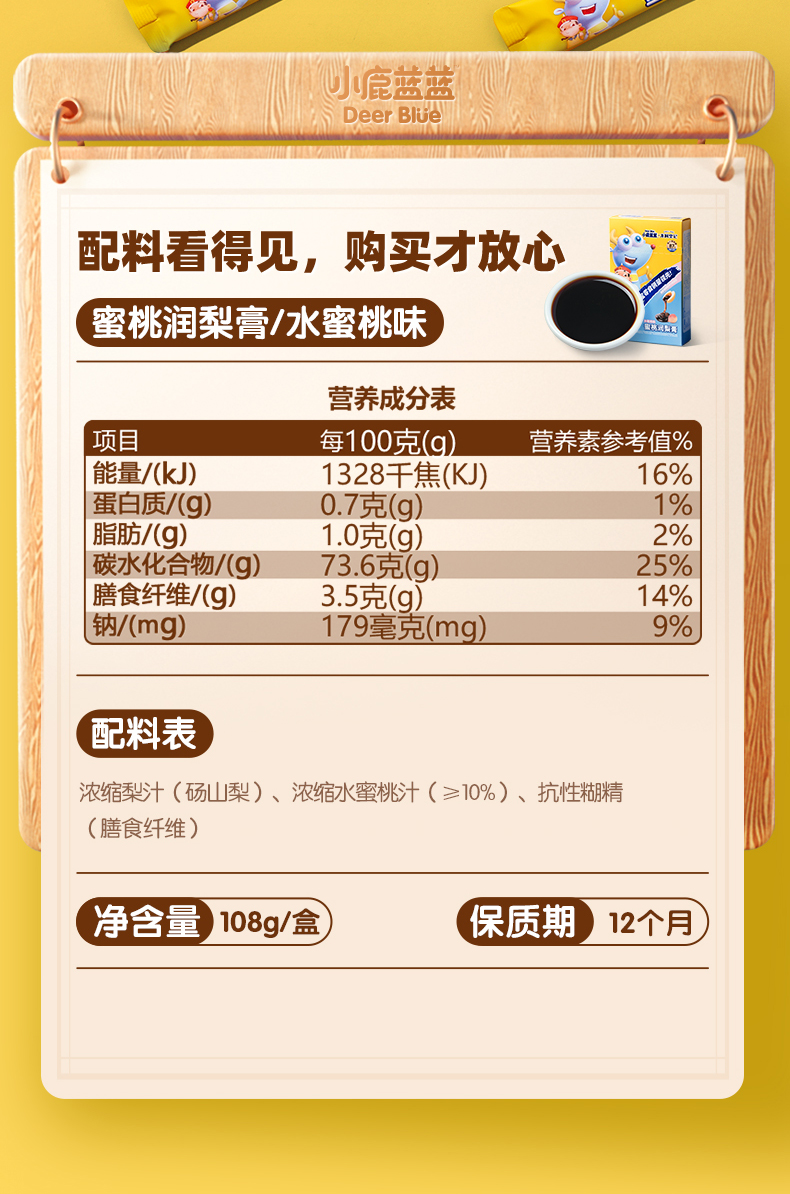 【组合量贩直降】【小鹿蓝蓝_蜜桃润梨膏/水蜜桃味/108g】