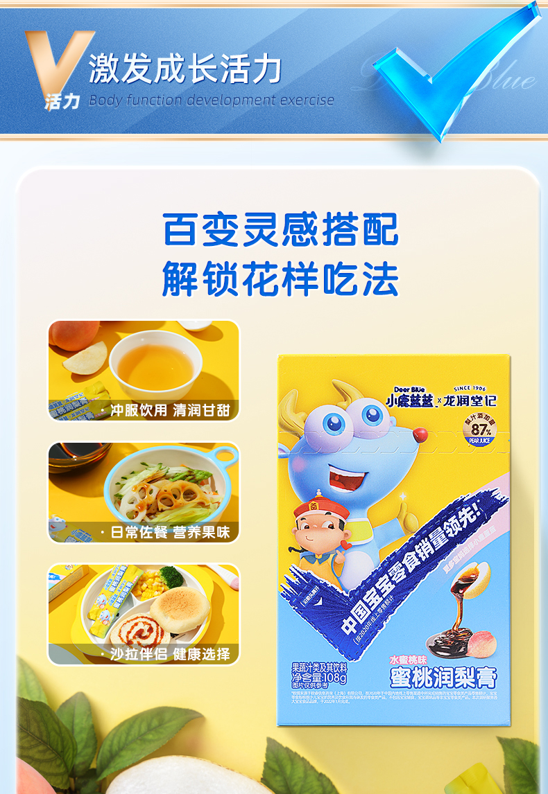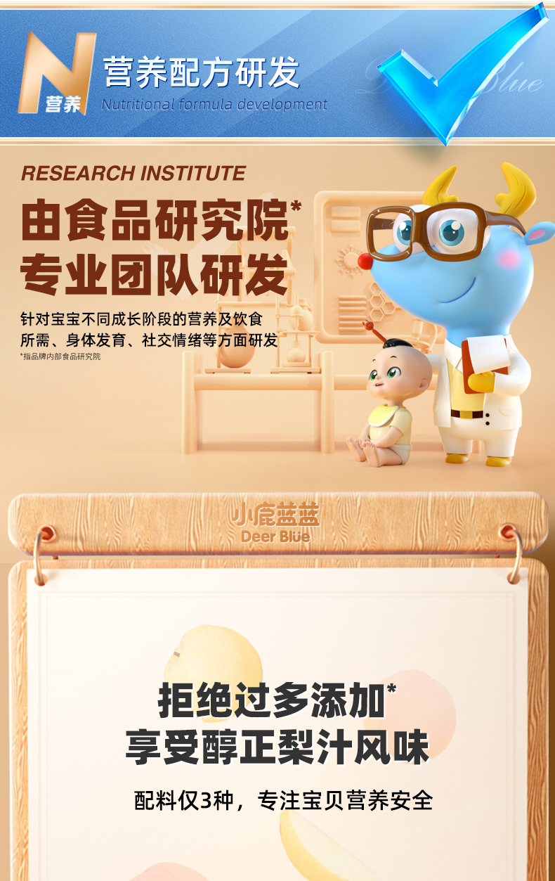 - 小鹿蓝蓝始终致力于为主人提供更优质、高性价比的产品、服务和体验,共同打造婴童零食生态圈,提升母婴行业的国货自信,守护和陪伴新一代儿童健康、快乐地成长。